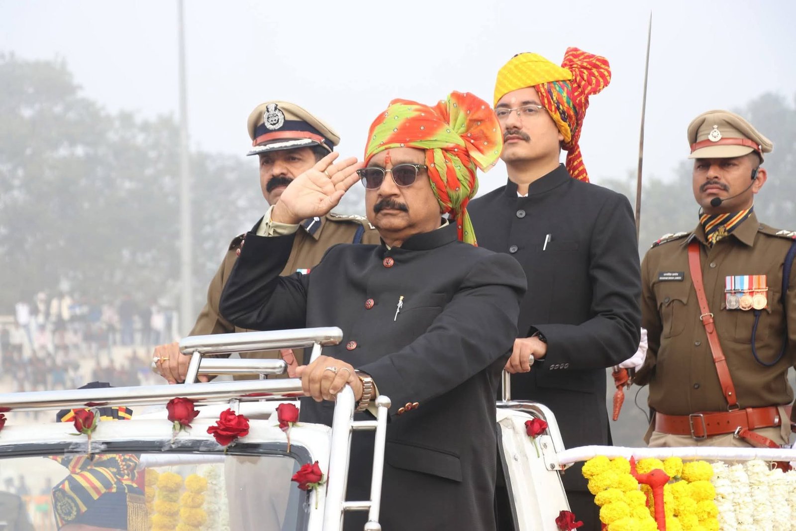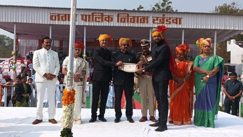 खण्डवा//प्रदेश के जनजातीय कार्य विभाग के मंत्री डॉ. कुंवर विजय शाह ने गणतंत्र दिवस के अवसर पर खंडवा के स्टेडियम ग्राउंड पर आयोजित जिला स्तरीय कार्यक्रम में झंडा वंदन किया। उन्होंने इस अवसर पर मुख्यमंत्री डॉ. मोहन यादव के संदेश का वाचन कर परेड की सलामी ली। मंत्री डॉ. शाह ने इस दौरान रंग बिरंगे गुब्बारे छोड़े और लोकतंत्र सेनानियों का शॉल व श्रीफल प्रदान कर सम्मान किया। इस अवसर पर स्कूली विद्यार्थियों ने रंगारंग सांस्कृतिक कार्यक्रम प्रस्तुत किये। विभिन्न विभागों द्वारा अपनी अपनी योजनाओं पर केन्द्रित झांकियों का प्रदर्शन भी इस अवसर पर किया गया। कार्यक्रम के अंत में उत्कृष्ट कार्यों के लिए अधिकारी कर्मचारियों को सम्मानित किया गया।
