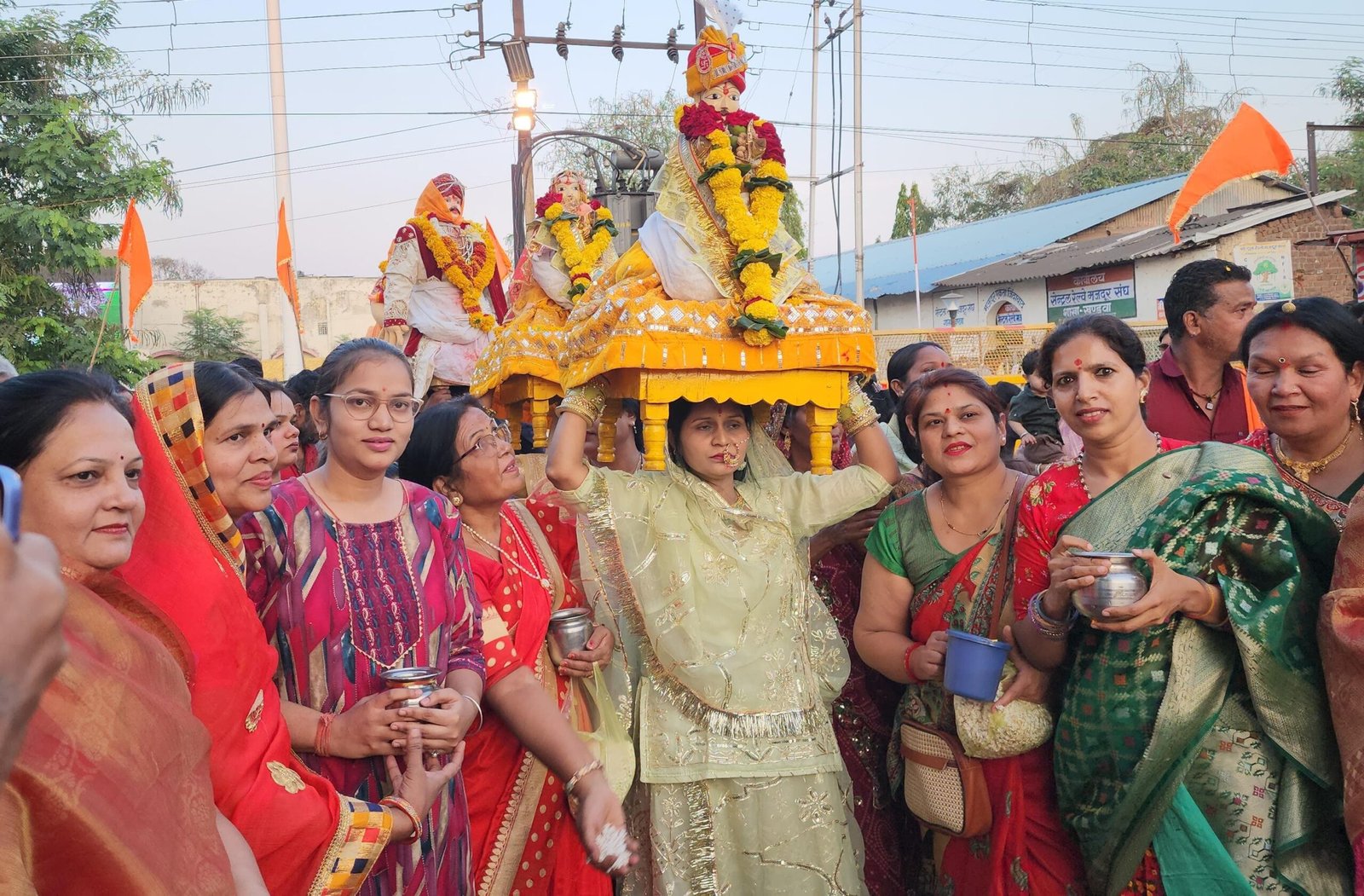 खण्डवा//गांधी भवन में आने वाली गणगौर माताजी का स्वागत,पूजन एवं चरण धुलाये गए