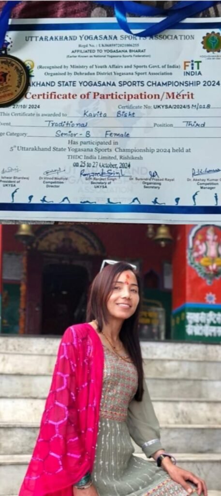 रानीखेत की कविता बिष्ट ने ऋषिकेश में योग प्रतियोगिता में जीता ब्रॉन्ज़ मैडल.