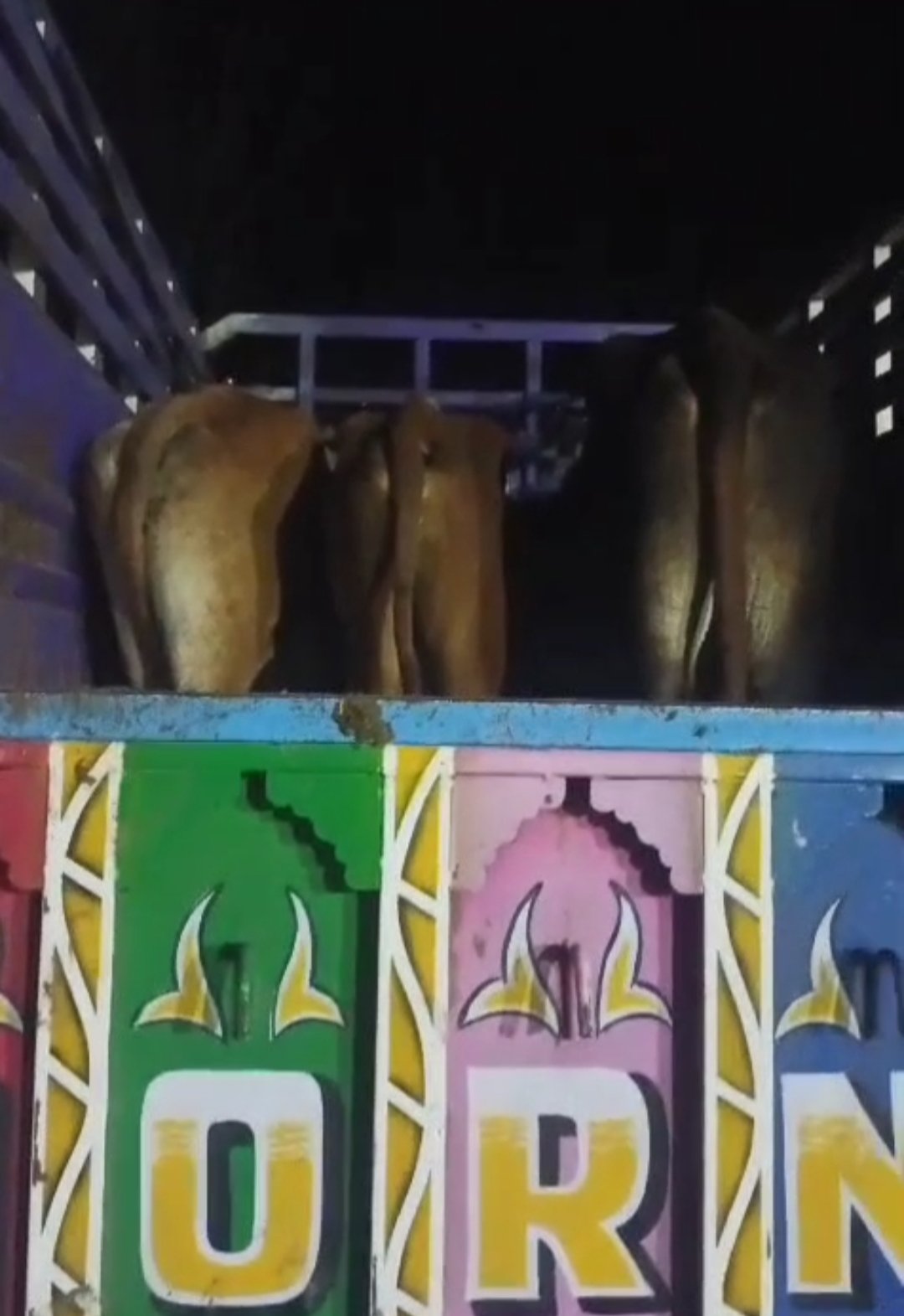 खंडवा, पुलिस अधीक्षक जिला खंडवा श्री मनोज कुमार राय द्वारा अवैध गौवंश परिवहन पर कार्यवाही करने हेतु अभियान चलाया जा रहा है इसी के तारतम्य मे अतिरिक्त पुलिस अधीक्षक (ग्रामीण) खंडवा श्री राजेश रघुवंशी, अतिरिक्त पुलिस अधीक्षक (शहर) खंडवा श्री महेन्द्र तारनेकर एवं डीएसपी मुख्यालय श्री अनिलसिह चौहान के निर्देशन मे थाना प्रभारी पिपलोद निरी. सुरेन्द्रनाथ पाण्डेय के नेतृत्व में थाना पिपलोद मे अपराध क्रमांक 407/24 धारा 4,6,9 म०प्र० गौवंश वध प्रति० अधि० एवं 11 पशु क्रुरता निवारण अधि. के तहत आरोपियों को गिरफ्तार किया गया है। दिनांक 13.11.24 को देहात भ्रमण करते मुखबीर द्वारा सूचना मिली कि एक सफेद रंग की पिकअप वाहन क्र. एमएच 02 ईआर 5763 मे बैल को भरकार वध हेतु महाराष्ट्र की तरफ ले जा रहा है मुखबीर की सूचना पर विश्वास कर 100 डायल मे डयुटीरत सैनिक 106 शांतिलाल को मुखबीर सूचना से अवगत कराया व राहगीर समक्ष पंचान मुखबीर की सूचना से अवगत कराकर हमराह लेकर मंदिर के पास ग्राम मोरघड पहुंचे तभी ग्राम गांधवा तरफ से एक सफेद रंग की पिकअप वाहन आते दिखी जिसे हमराह बल व पंचानो की मदद से रोका गया। पिकअप वाहन क्र. एमएच 02 ईआर 5763 के पीछे चेक करने पर 03 बैल जिनके चारो पैर व मुंह रस्सी से बंधे हुए ठुस ठुस कर क्रुरता पुर्वक भरे थे। पिकअप में बैठे ड्रायवर से उसका नाम पता पुछते उसने अपना नाम स्वप्निल पिता संजय उम्र 19 साल निवासी ग्राम सेलगांव थाना शाहपुर जिला बुरहानपुर व बगल में बैठे व्यक्ति का नाम पुछते उसने अपना नाम सुनिल पिता मनोज उर्फ उदलसिंग उम्र 24 साल निवासी ग्राम सेलगांव थाना शाहपुर जिला बुरहानपुर होना बताया। जिनसे पुछताछ करने पर महाराष्ट्र वध करने के लिये ले जाना बताया। मौके पर पिकअप वाहन क्र. एमएच 02 ईआर 5763 मय 03 बैल की किमती 27000 रूपये एवं पिकअप वाहन किमती 230000 रू. कुल मनुका 257000 रूपये का जप्त कर अपराध क्रमांक 407/24 धारा 4,6,9 म०प्र० गौवंश वध प्रति० अधि० एवं 11 पशु क्रुरता निवारण अधि. के तहत विवेचना मे लिया गया है।