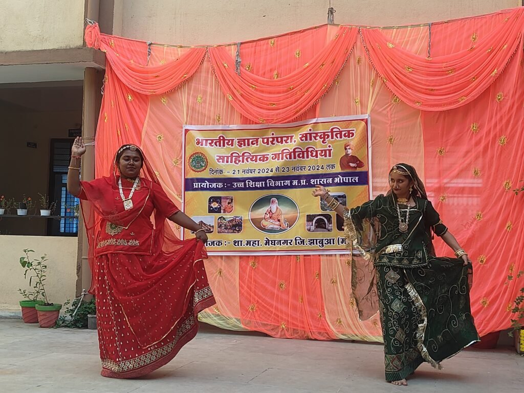 शासकीय महाविद्यालय मेघनगर में उच्च शिक्षा विभाग मध्यप्रदेश के आदेशानुसार दिनांक 21 नवंबर 2024 से 23 नवंबर 2024 तक भारतीय ज्ञान परंपरा के अंतर्गत महाविद्यालयीन स्तर पर तीन दिवसीय कार्यक्रम मनाया गया। उच्च शिक्षा विभाग के उक्त भारतीय ज्ञान परंपरा कार्यक्रम का उद्देश्य आज के युवा विद्यार्थियों को शिक्षा के माध्यम से विराट भारत के प्राचीन पारंपरिक ज्ञान रूपी समृद्ध भंडार से अवगत कराना है ताकि हमारी नई पीढ़ी आधुनिकता के पंखों के साथ भारतीय ज्ञान परंपरा की जड़ों से भी गहराई के साथ जुड़ सके।