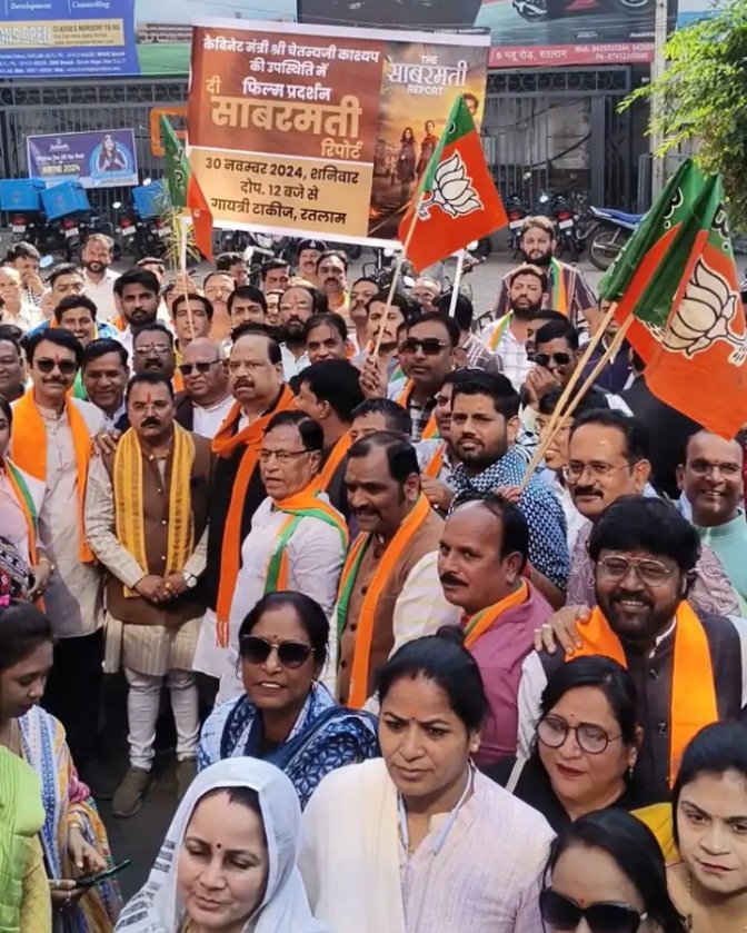 रतलाम में शनिवार को भाजपाईयों ने केबिनेट मंत्री चेतन्य काश्यप के साथ गोधरा कांड पर बनी साबरमती रिपोर्ट फिल्म देखी। फिल्म देखने के पहले सभी गायत्री मल्टीप्लेक्स में एकत्र हुए। भारत माता और प्रधानमंत्री नरेंद्र मोदी की जय के नारे लगाए।