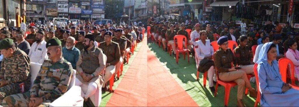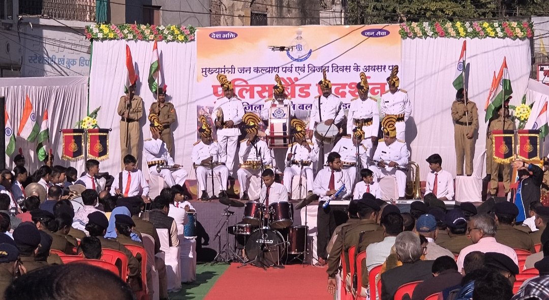 खंडवा,दिनांक 16 दिसम्बर को जिसे प्रतिवर्ष विजय दिवस के रूप मे मनाया जाता है, इस वर्ष विजय दिवस के साथ माननीय मुख्यमंत्री मध्यप्रदेश शासन डॉ. मोहन यादव के निर्देश पर सम्पूर्ण मध्यप्रदेश के प्रत्येक जिला मुख्यालय मे मुख्यमंत्री जन कल्याण पर्व के रूप मे मनाने का निश्चय किया गया है। इस अवसर पर खंडवा पुलिस के तत्वाधान मे जिला खंडवा के केवलराम चौक में खंडवा पुलिस बैंड व सेंट पायस स्कूल के बच्चो द्वारा देशभक्ति के गीतों की विशेष प्रस्तुति बैंड एवं वाद्य यंत्रों द्वारा दी गई। यह प्रस्तुति ना केवल देशभक्ति की भावना से ओत-प्रोत थी, बल्कि इसने भारतीय सेना के बलिदानों की याद दिलाई एवं युवा पीढ़ी मे उत्साह भरने का काम किया।कार्यक्रम की शुरुआत मां भारती के चरणों पर पुष्प अर्पित कर तथा दीप प्रज्वलित कर की गई। कार्यक्रम मे पुलिस बैण्ड प्रस्तुति के दौरान केवलराम चौक खंडवा में महापौर श्रीमती अमृता यादव, जिलाधीश खंडवा श्री अनूप कुमार सिंह, अतिरिक्त पुलिस अधीक्षक (शहर) श्री महेंद्र तारणेकर, अतिरिक्त पुलिस अधीक्षक (ग्रामीण) श्री राजेश रघुवंशी, एडीएम खंडवा श्री काशीराम बड़ोले, एसडीएम खंडवा श्री बजरंग बहादुर, उप पुलिस अधीक्षक मुख्यालय श्री अनिल सिंह चौहान, उप पुलिस अधीक्षक यातायात श्री आनंद स्वरूप सोनी, जनप्रतिनिधिगण, एनसीसी कैडेट्स, एनसीसी ऑफिसर्स, स्कूली बच्चे व पुलिस अधिकारी व कर्मचारीगण, गणमान्य नागरिक तथा आमजन करीब 700 की संख्या मे उपस्थित रहे।
