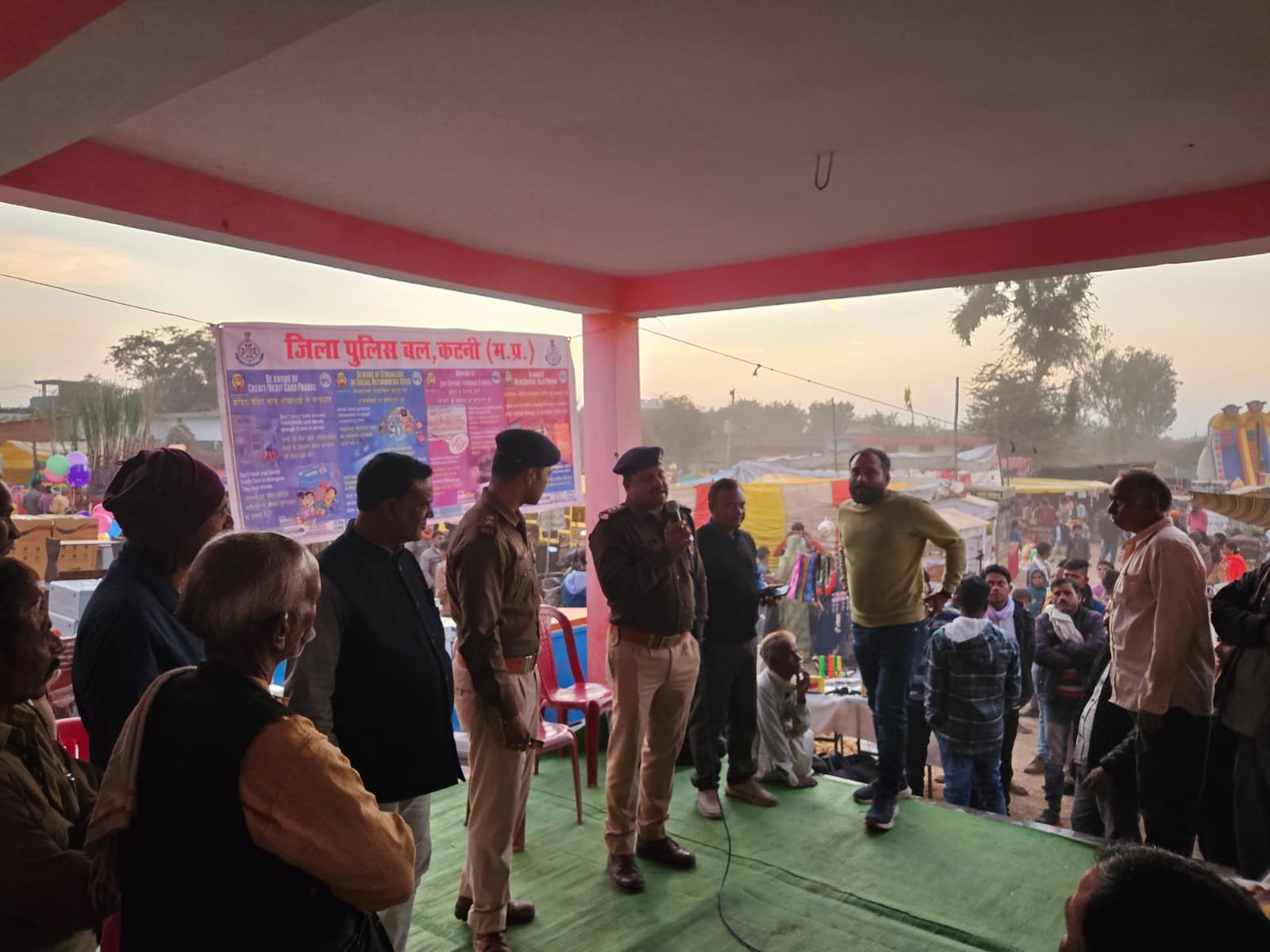 कटनी-दिनांक – 17/12/2024श्रीमान पुलिस अधीक्षक महोदय श्री अभिजीत कुमार रंजन (भा0पु0से0) द्वारा समाज को नशामुक्त बनाने, सड़क दुर्घटनाओं में कमी एवं सायबर संबंधी अपराधों पर अंकुश लगाने हेतु लोगों को जागरूक किए जाने के लिए निर्देशित किया गया है जिनके निर्देशानुसार अतिरिक्त पुलिस अधीक्षक संतोष डेहरिया, नगर पुलिस अधीक्षक श्रीमति ख्याति मिश्रा के मार्गदर्शन में थाना प्रभारी कुठला निरीक्षक अभिषेक चौबे के नेतृत्व में चौकी प्रभारी बिलहरी उप निरीक्षक सुयश पाण्डेय व स्टाफ द्वारा ग्राम खरखरी नम्बर 2 में चण्डी मेला के दौरान कानून व्यवस्था ड्यूटी के दौरान आम जन को नशा के दुष्प्रभाव, यातायात नियमों का पालन करने एवं सायबर क्राईम से बचने के प्रभावी उपायों को बताया गया साथ ही उपस्थित जन समुदाय को नशा न करने की शपथ दिलाई गई । कार्यक्रम में करीब 200 लोग उपस्थित रहे।