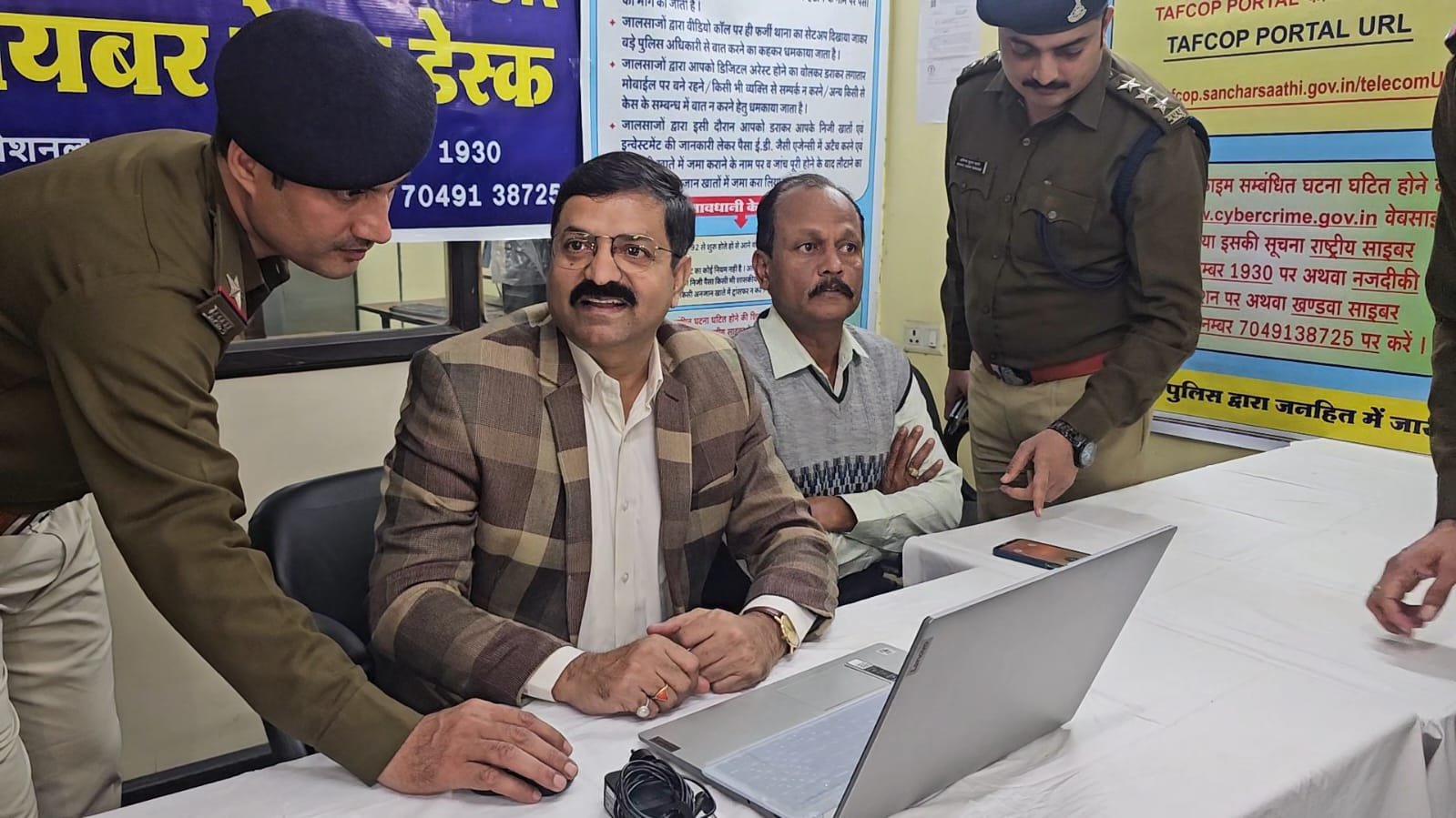 खंडवा ।। खंडवा जिले के सभी थानों में बुधवार से साइबर हेल्प डेस्क की शुरुआत हुई। खंडवा पुलिस अधीक्षक मनोज राय ने कोतवाली थाने में मुख्य साइबर डेस्क से इसकी शुरुआत की, समाजसेवी सुनील जैन ने बताया कि पुलिस अधीक्षक मनोज राय ने खुद हेल्पलाइन नंबर पर कॉल करके पहले चेक किया फिर साइबर अपराधों में किस तरह शिकायतें लिखी जाती है वह भी कंप्यूटर पर बैठकर परखा। खंडवा के साथ