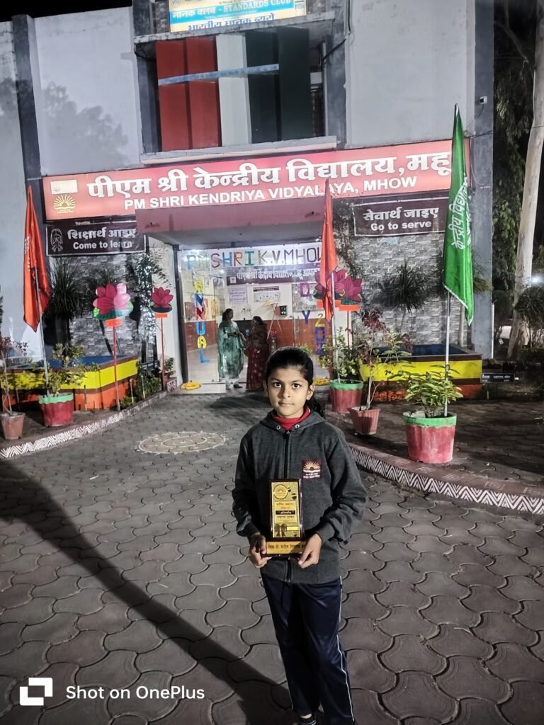 आज केंद्रीय विद्यालय महू में वार्षिकोत्सव कार्यक्रम का शुभारंभ मुख्य अतिथि ब्रिगेडियर लवलीश कुमार भारद्वाज विशिष्ट सेना मेडल स्टेशन कमांडर महू के द्वारा मां सरस्वती के सामने दीप प्रज्वलित करके किया गया। विद्यालय के नन्हे मुन्ने बच्चों द्वारा शानदार संगीत, नाटक, और अलग अलग भाषाओं में डांस की प्रस्तुति दी गई।इसकेबाद विद्यालय के प्राचार्य महोदय द्वारा पूरे वर्ष का रिपोर्ट कार्ड सभी पैरेंट्स के सामने प्रस्तुत किया गया। तत्पश्चात् विद्यालय के विद्यार्थियों द्वारा किए गए अलग अलग क्षेत्रों के उत्कृष्ठ प्रदर्शन के लिए अवॉर्ड मेडल एवं सर्टिफिकेट वितरित किए गए। इस दरम्यान महू के समाजसेवी एवं निजी बैंक में शाखा प्रबंधक के पद पर कार्यरत संदीप कुमार मिश्रा की पुत्री आराध्या मिश्रा को पूरे विद्यालय में कक्षा 3में उत्कृष्ट प्रदर्शन के लिए अवॉर्ड दिया गया। जिसमें आराध्या के माता पिता ने इसका श्रेय स्कूल के शिक्षकों को दिया।