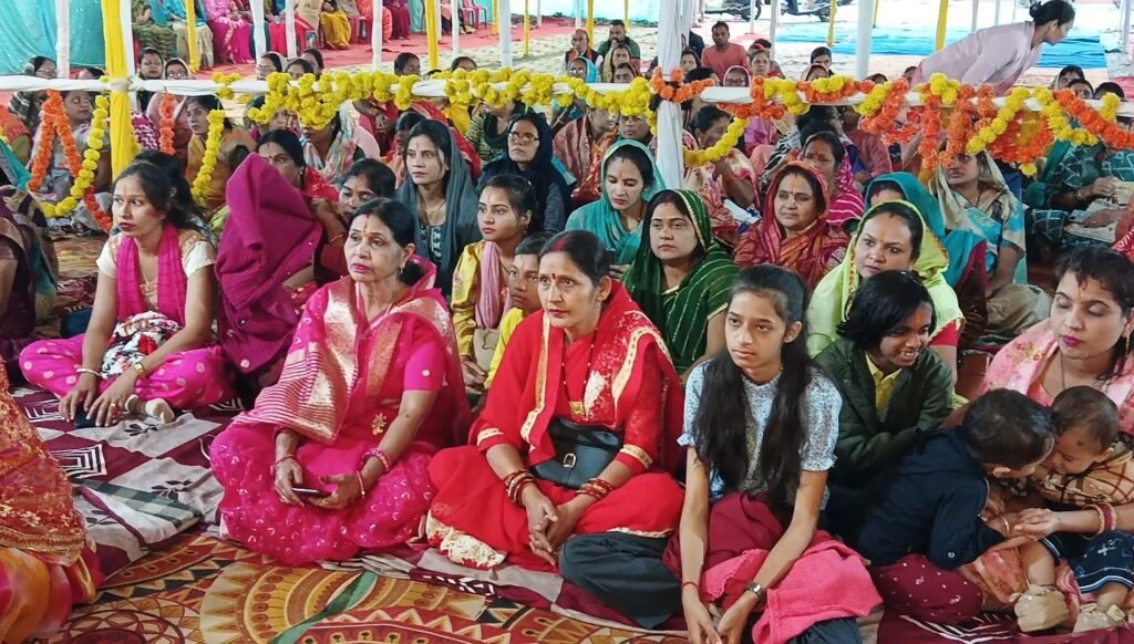 श्रीमद भागवत कथा का श्रवण करने हेतु लग रहा है श्रद्धालु भक्तों की भीड़