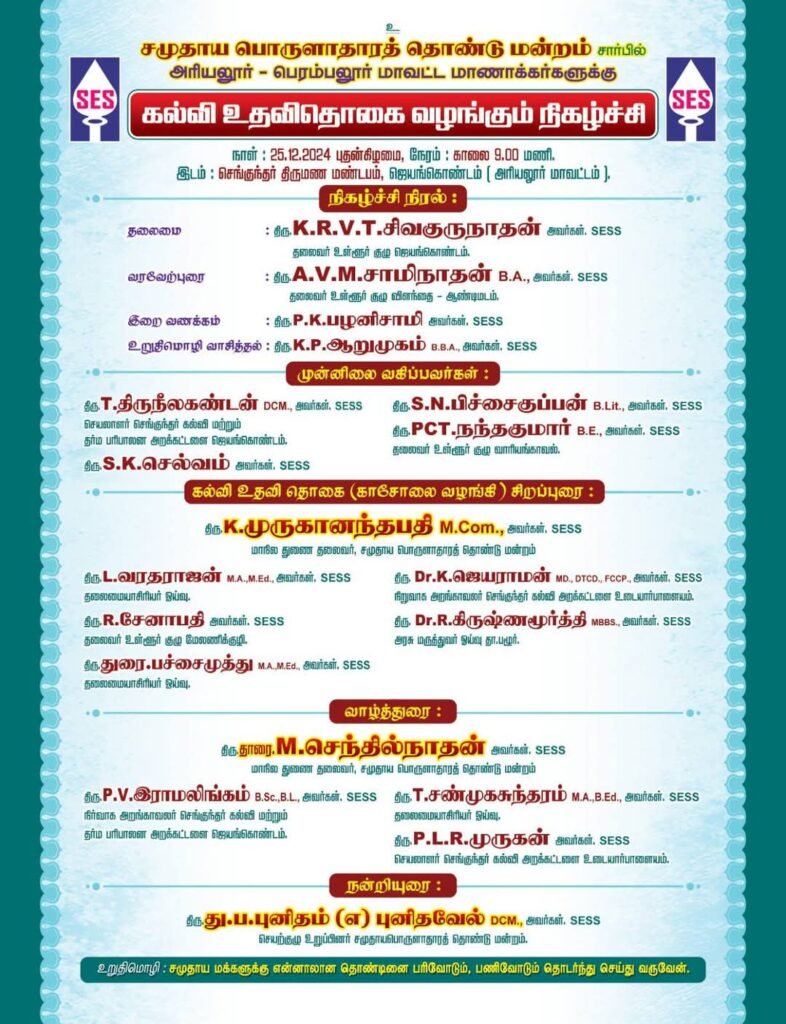சமுதாய பொருளாதார தொண்டு மன்றம் – SESS (சென்னை) சார்பில்