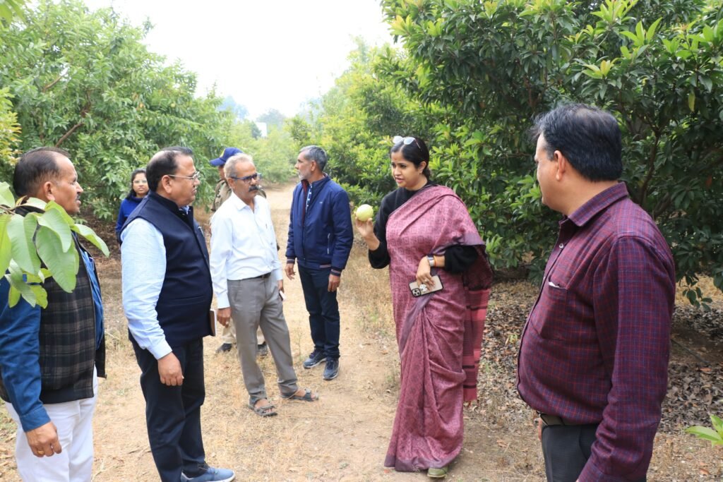 कृषि विज्ञान केन्द्र द्वारा मुख्यमंत्री खेत तीर्थ योजना के तहत निर्मित फलों के बगीचे का कलेक्टर नेहा मीना द्वारा निरीक्षण किया गया। बगीचे में चिकू की कालीपत्ती किस्म, अमरूद की लखनाउ 49 एवं ललित के एवं सीताफल के बालानगर किस्म के पौधे लगाये गए है।