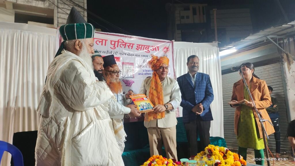 कार्यक्रम में पुलिस अधीक्षक महोदय द्वारा आमजन को जागरूक करते हुए बताया की हमारे झाबुआ जिले की प्रमुख समस्या अशिक्षा है, बच्चे के माता पिता कम उम्र में ही बच्चों की शादी कर देते है या वो खुद ही घर से पलायन कर मजदूरी करने अन्य राज्यों में चले जाते है, जिस कारण वह शिक्षा से वंचित रह जाते है, इसलिए हमे चाहिए कि हम अपने बच्चो को कम से कम 12 वी कक्षा तक अवस्य पढ़ाए।