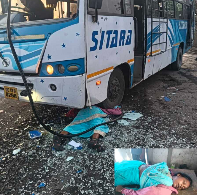 रायगढ़ – सड़क किनारे खड़ी ट्रक से टकराई यात्री बस! पहिये के नीचे आई सामने सीट पर बैठी महिला, मौके पर मौत! सामारूमा गांव के पास हुई घटना…