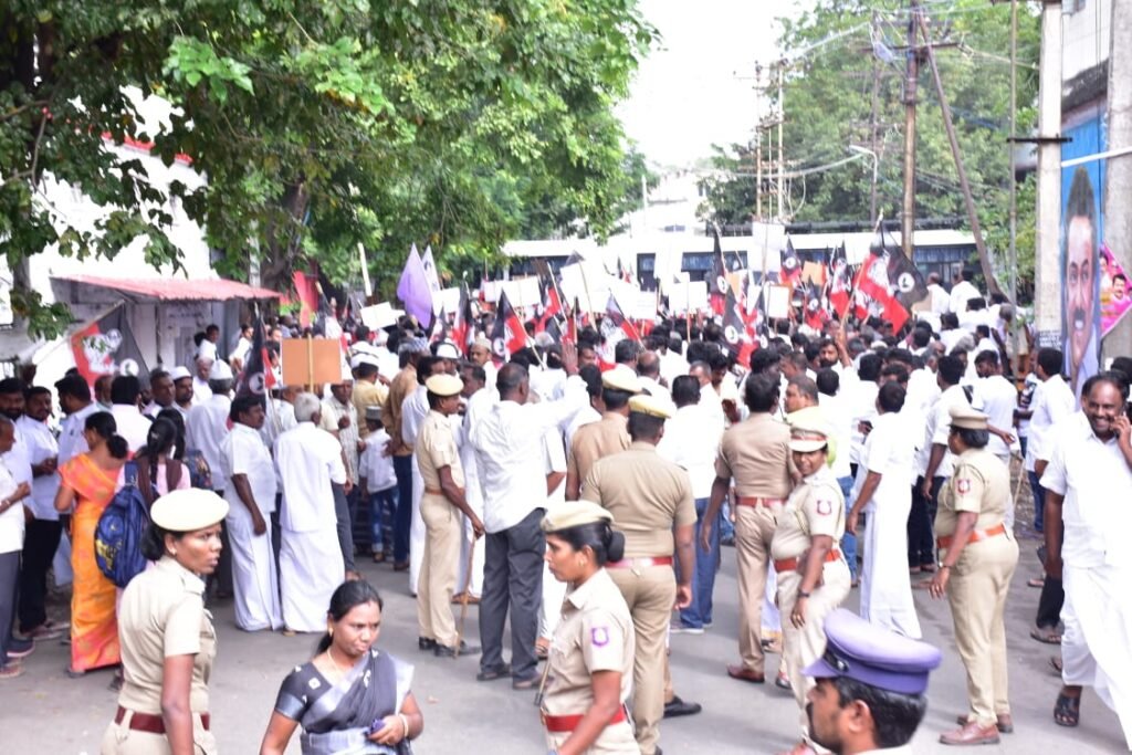 கரூரில் அதிமுக சார்பில் அண்ணா பல்கலைக்கழக மாணவி பாலியல் வன்கொடுமையை கண்டித்தும், பெண்களுக்கு எதிராக பாலியல் வன்கொடுமைகள், பாலியல் சீண்டல்கள் கண்டித்தும் திமுக அரசை கண்டித்தும் அதிமுக கழக அமைப்புச் செயலாளர்,முன்னாள் அமைச்சர் சின்னசாமி,கரூர் மாவட்ட கழகச் செயலாளர்,முன்னாள் அமைச்சர் எம்.ஆர்.விஜயபாஸ்கர் ஆகியோர் தலைமையில் கரூர் தலைமை தபால் நிலையம் அருகே கண்டன ஆர்ப்பாட்டம் நடைபெற்றது.