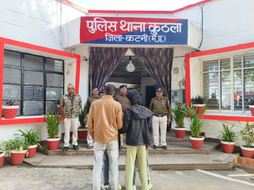*कटनी*- पुलिस अधीक्षक अभिजीत कुमार रंजन द्वारा नये वर्ष के आगमन पर शांति व्यवस्था बनाए रखने एवअसामाजिक तत्वों पर अंकुश लगाते हुए प्रभावी कार्यवाहियां किए जाने निर्देशित किया गया है। जिनके निर्देशानुसार अतिरिक्त पुलिस अधीक्षक डॉक्टर संतोष डेहरिया, नगर पुलिस अधीक्षक श्रीमति ख्याति मिश्रा के मार्गदर्शन में थाना प्रभारी कुठला निरीक्षक अभिषेक चौबे के नेतृत्व में कुठला पुलिस द्वारा मित्तल कॉलोनी के पास आपस में विवाद कर क्षेत्र में अशांति फैलाते पाये जाने पर समीर अंसारी पिता शाकिर अंसारी उम्र 24 साल निवासी मिशन चैक ईश्वरीपुरा वार्ड थाना कोतवाली, दीपक साहू पिता मुन्नालाल साहू उम्र 27 साल निवासी पाठक वार्ड थाना रंगनाथनगर, योगेश त्रिपाठी पिता लवकुश त्रिपाठी उम्र 27 साल निवासी भट्टा मोहल्ला थाना रंगनाथनगर एवं विनय सेंधिया पिता स्व0 गणेश प्रसाद उम्र 27 साल निवासी मिशन चौक ईश्वरीपुरा वार्ड कोतवाली कटनी के विरुद्ध शांति व्यवस्था बनाये रखने हेतु प्रतिबंधात्मक कार्यवाही धारा 170 बीएनएसएस के तहत कार्यवाही करते हुए एसडीएम न्यायालय भेजा गया जहाँ से आरोपियों को जेल भेज दिया गया है। कुठला पुलिस थाना प्रभारी निरीक्षक अभिषेक चौबे द्वारा उपद्रवी तत्वो से अपील की जाती है कि नये वर्ष में अनावश्यक माहौल खराब न करे यदि उपद्रवी तत्व अपनी हरकतों मे सुधार नही करते है तो उनके विरुद्ध विधि संगत कार्यवाही करते हुए कार्यवाही की जावेगी ।