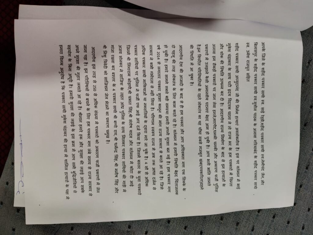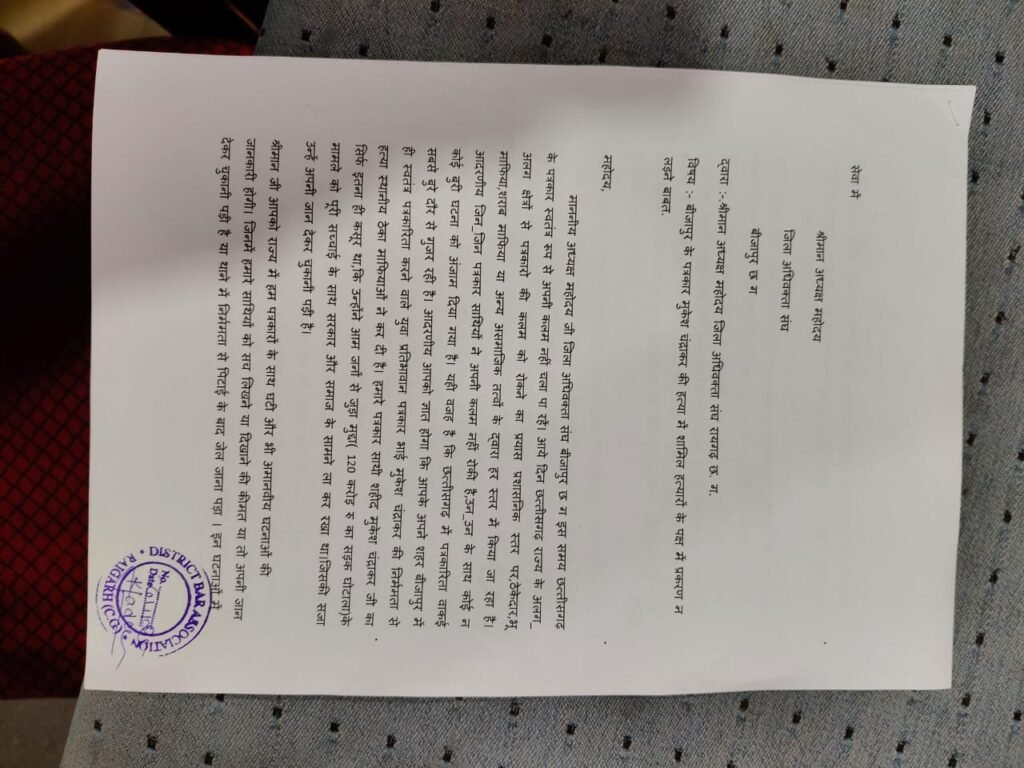 रायगढ़ जिला अधिवक्ता संघ के माध्यम से रायगढ़ के पत्रकारों ने रखी मांग