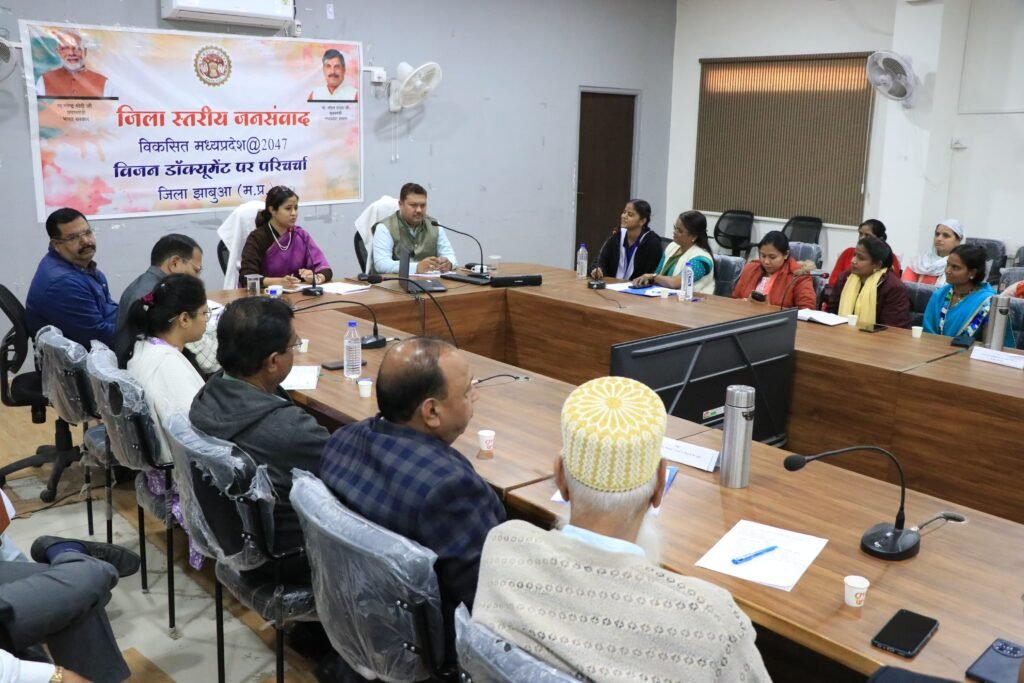 झाबुआ 08 जनवरी, 2025। मध्यप्रदेश शासन द्वारा प्रदेश के सर्वांगीण और समावेशी विकास की दिशा में अग्रसर होने एवं वर्ष 2047 तक विकसित भारत के साथ-साथ मध्यप्रदेश को भी विकसित राज्य बनाने के उद्देश्य से विकसित मध्यप्रदेश @2047 विजन डॉक्यूमेंट तैयार किया जा रहा है। जिसके माध्यम से प्रदेश सर्वांगिण एवं समावेशी विकास की दिशा में अग्रसर हो सके। इसके लिए प्रदेश एवं जिले के आम नागरिको से सुझाव प्राप्त करते हुए उनके ठोस एवं व्यावहारिक विचारों को विकसित मध्यप्रदेश @2047 विजन डॉक्यूमेंट में शामिल किया जाकर एक क्रियान्वयन योग्य रोड मैप तैयार किया जा सके।