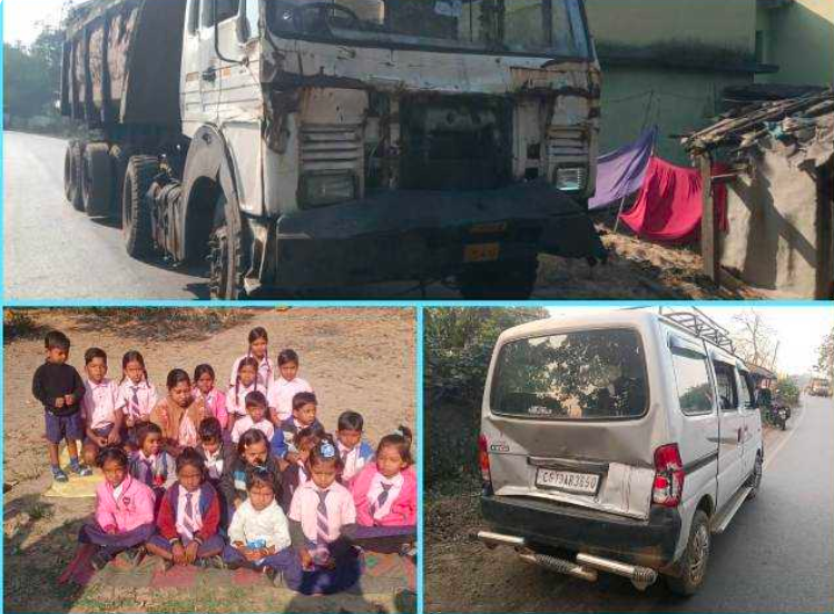 मिली जानकारी के अनुसार यह घटना 8.30 बजे सुबह की बताई जा रही है, घटना में ओड़िशा से आरही ओभरलोड टेलर क्र.- OD16-5416 के ड्राइवर शराब पी कर अनियंत्रित तरीका से टेलर को चला कर खड़ी स्कूली वेन को पिछे से ठोकर मार दिया। वेन में अध्यापक व बच्चे बैठे हुए थे। गनीमत रहा की बच्चों को कुछ नहीं हुआ ।