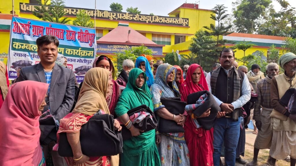 समस्तीपुर। जिले के रोसड़ा प्रखंड के आदर्श ग्राम पंचायत राज मोतीपुर की मुखिया श्रीमती प्रेमा देवी के सौजन्य से सर्दी एवं शीतलहर को देखते हुए पंचायत के गरीब, विधवा, दिव्यांग, निःसहाय लोगों के बीच 700 कंबल एवं 700 दरी का वितरण किया गया। वितरण समारोह में रोसड़ा प्रखंड विकास पदाधिकारी