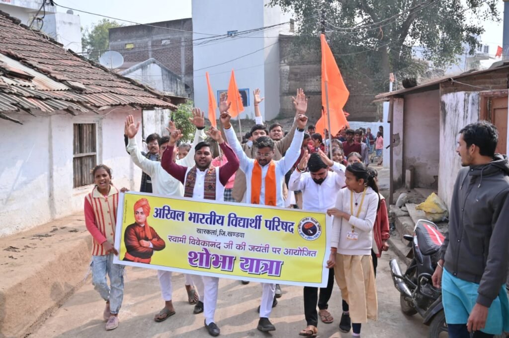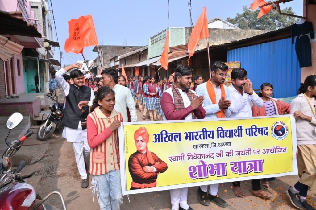 खण्डवा:-अखिल भारतीय विद्यार्थी परिषद खंडवा जिले की खारकला नगर इकाई मंत्री दुर्गेश राठौर ने बताया कि स्वामी विवेकानंद की जयंती के उपलक्ष्य में खुला मंच एवं शोभा यात्रा निकाली गई जिसमें मुख्य अतिथि के रूप में विद्यार्थी परिषद के प्रांत सह मंत्री विजेंद्र राणा विशिष्ट अतिथि एवं विद्यार्थी परिषद के जिला संयोजक हर्ष वर्मा विशेष रूप से उपनिरीक्षक चंद्रकांत सोनवाने उपस्थित रहे। कार्यक्रम की भूमिका नगर मंत्री दुर्गेश राठौर ने रखी एवं इसके पश्चात जिला संयोजक हर्ष वर्मा ने छात्रों को संबोधित करते हुए कहा कि स्वामी विवेकानंद जी ने भारत का मान पूरे विश्व में बढ़ाया दुनिया भर में भारतवर्ष की प्राचीन भारतीय संस्कृति का प्रचार प्रसार किया 11 सितंबर 1893 शिकागो में आयोजित विश्व धर्म महासभा में भारत की ओर से सनातन धर्म का प्रतिनिधित्व जब विवेकानंद जी ने किया और उस भाषण की शुरुआत में ही मेरे अमेरिकी बहनों और भाइयों वाक्य का जब उपयोग किया तो पूरा सदन तालिया की गड़गड़ाहट के साथ गरज उठा और शुरुआती में ही विवेकानंद जी ने सबका दिल जीत लिया भारत के प्रत्येक युवा को स्वामी जी के विचारो पर चलकर अपने जीवन को नव नूतन उपलब्धियों को प्राप्त करने की आवश्यकता है विद्यार्थी परिषद हर विद्यार्थी के सपनो को साकार करने में सहायता प्रदान करने वाला संगठन है सभी विद्यार्थियों को कड़ी मेहनत करके अपने माता पिता के सपनो को साकार करना चाहिए और कड़ी मेहनत करनी चाहिए उसके पश्चात प्रांत सह मंत्री विजेंद्र राणा ने कहा कि स्वामी विवेकानंद जी का मानना था कि युवा वर्ग परिवर्तन का वाहक होता हे कि अखिल विश्व में उन्होंने अपनी प्रज्ञा बुद्धि माध्यम से सनातन परंपरा का परचम विश्व में लहराने के साथ ही साथ भारत को भी वह गौरवपूर्ण स्थान दिलाया था जिनका भारत निश्चित रूप से अधिकारी था भारत ही नहीं अपितु भारतीय प्रतिमानों को पूरे विश्व तक पहुंचाने का काम किया था यदि प्रतिभाओं को उचित अवसर मिले तो निश्चित रूप से वह इतिहास रचेगी हम बात जब प्रतिभाओं की करते हैं तो उसके पीछे संघर्षों की बात होना भी लाजमी है इसके पश्चात नगर में भव्य शोभायात्रा निकाली गई जिसका जगह जगह फूलो से स्वागत किया गया कार्यक्रम का संचालन नगर सह मंत्री अमन सांवले ने किया एवं कार्यक्रम का आभार नगर मंत्री दुर्गेश राठौर ने किया इस दौरान विद्यार्थी परिषद के कार्यकर्ता सहित सैकड़ो विद्यार्थी उपस्थित रहे