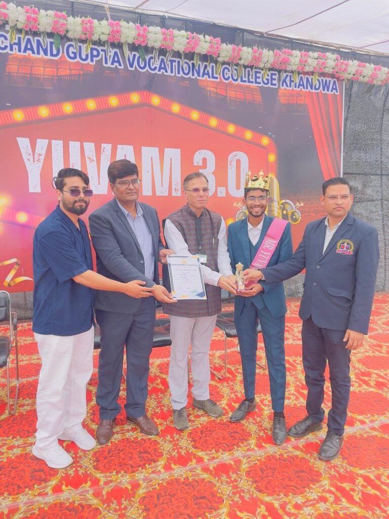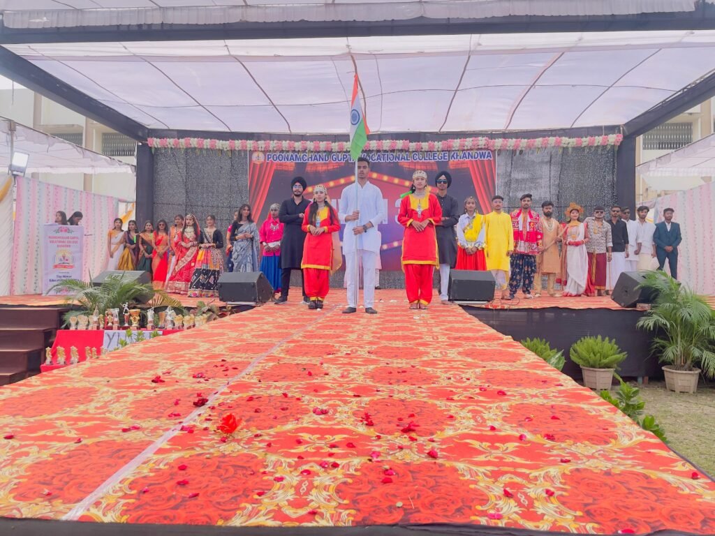 खंडवा ।। पूनमचंद गुप्ता वोकेशनल महाविद्यालय खंडवा में वार्षिकोत्सव ‘युवाम 3.0 ‘ के अंतर्गत तृतीय दिवस गुरूवार को रेम्प वॉक का आयोजन किया गया। महाविद्यालय में आयोजित हो रहे वार्षिकोत्सव ‘युवाम 3.0‘ के तृतीय दिवस विद्यार्थियों के रेम्प वॉक का आयोजन हुआ जिसमे विद्यार्थियों ने देश के विभिन्न राज्यों की संस्कृति के रंग बिखेरे, समाजसेवी सुनील जैन ने बताया कि आयोजन में विद्यार्थियों द्वारा अलग अलग राज्यों के संस्कृति के अनुसार वेशभूषा धारण कर अपनी प्रतिभा का प्रदर्शन किया। रेम्प वॉक में मिस्टर पीसीजी बी.कॉम. तृतीय वर्ष के छात्र पियूष पटेल बने एवं मिस पीसीजी बी.सी.ए. प्रथम वर्ष की छात्रा अनुष्का भावसार बनी। जोड़ी के रूप में प्रथम स्थान पर हार्दिक पटेल एवं महक भावसार की जोड़ी रही एवं द्वितीय स्थान पर आकाश नामदेव, अंजलि तोमर को जोड़ी रही। रेम्प वॉक के निर्णायक के रूप में सुश्री आयुषी गुप्ता उपस्थित थी। इस कार्यक्रम में मुख्य अतिथि के रूप में श्री विनय जैन, प्राचार्य श्री माखनलाल चतुर्वेदी शासकीय कन्या महाविद्यालय खंडवा एवं विशेष अतिथि के रूप में श्री दीपक हरी रानाडे, डीन भगवंत राव मंडलोई कृषि महाविद्यालय खंडवा शामिल हुए।कार्यक्रम की शुरुआत दीप प्रज्जवलन एवं माँ सरस्वती के चित्र पर माल्यार्पण के साथ हुई, इसके बाद अतिथियों द्वारा गत वर्ष मे मेरिट स्थान पर रहे विद्यार्थियों को प्रमाण पत्र एवं मेडल वितरित किये गये। अतिथियों द्वारा दिए गये उद्बोधन में अतिथियों ने अपने अनुभव साझा करते हुए विद्यार्थियों को बहुत सी महत्वपूर्ण जानकारी दी एवं प्रेराणादायक विचार व्यक्त किये ।अतिथियों का स्वागत महाविद्यालय प्राचार्य डॉ. दीपेश उपाध्याय एवं प्रबंधक सतीश पटेल द्वारा किया गया। कार्यक्रम का संचालन श्रीमती रश्मि दीक्षित, पलक वर्मा, एवं अन्वि चटकेले द्वारा किया गया एवं अंत में आभार सुश्री नेहा राजावत द्वारा माना गया।