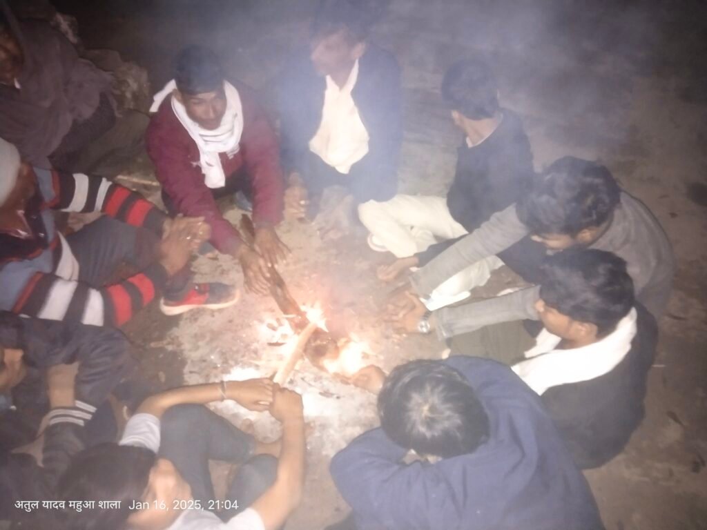 जैतपुर ब्लॉक चंबल के किनारे बसे हुए गांव में लोगों ने लगाया अलाव