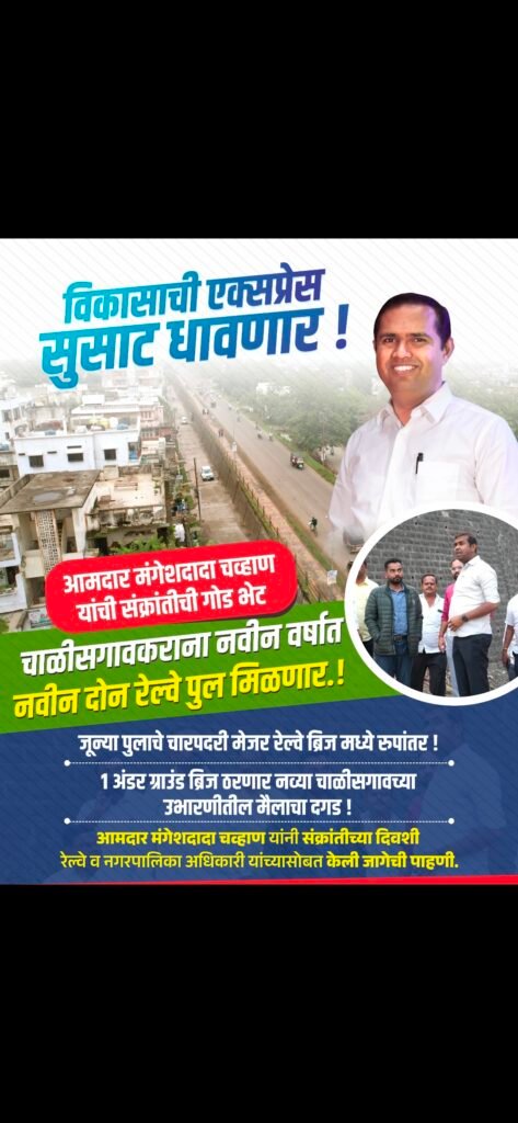 पर यातायात बढ़ गया है। इसे ध्यान में रखते हुए और शहर के विकास के अगले 50 वर्षों के दृष्टिकोण को ध्यान में रखते हुए, विधायक मंगेश चव्हाण ने नया रेलवे पुल बनाने का वादा किया था। अपने वचन के अनुरूप, उन्होंने चालीसगांव शहर में मौजूदा पुराने रेलवे पुल के स्थान पर एक नए चार-स्पैन रेलवे ओवर ब्रिज को मंजूरी ले ली है। इस नए पुल का काम पूरा होने तक यातायात के लिए रेलवे ओवर ब्रिज के किनारे एक रेलवे अंडर ब्रिज का निर्माण किया जाएगा। इस संबंध में प्रक्रियाएं अंतिम चरण में हैं और संक्रांति के दिन विधायक मंगेश चव्हाण ने रेलवे विभाग के अधिकारियों और नगरपालिका प्रमुख के साथ पुराने रेलवे फ्लाईओवर और क्षेत्र का निरीक्षण किया।