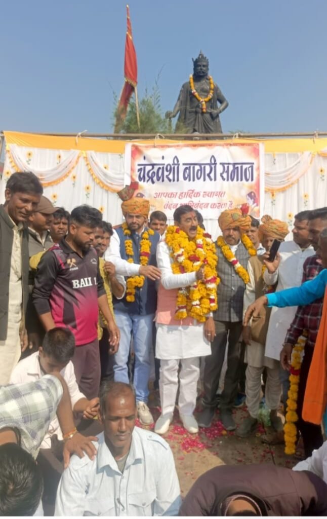 नागदा/चंद्रवंशी बागरी समाज नागदा खाचरौद विधानसभा द्वारा भारतीय जनता पार्टी के नवनिर्वाचित जिला अध्यक्ष राजेश धाकड़,नागदा मंडी अध्यक्ष विजय पटेल, नागदा ग्रामीण अध्यक्ष गोवर्धन परिहार, नागदा बिरला ग्राम मंडल अध्यक्ष प्रकाश जैन का संयुक्त स्वागत रविवार को दोपहर 1:00 बजे सम्राट राजा जन्मेजय स्मारक पर माल्यार्पण कर आतिशबाजी के साथ किया गया इस अवसर पर समाज सुधार समिति के राष्ट्रीय संस्थापक श्री अंबाराम परमार ने जिला अध्यक्ष श्री धाकड़ मंडल अध्यक्ष श्री पटेल श्री जैन श्री परिहार को साफा बांध समाज के युवाओं ने पुष्प वर्षा एवं पुष्पमाला पहनकर स्वागत किया