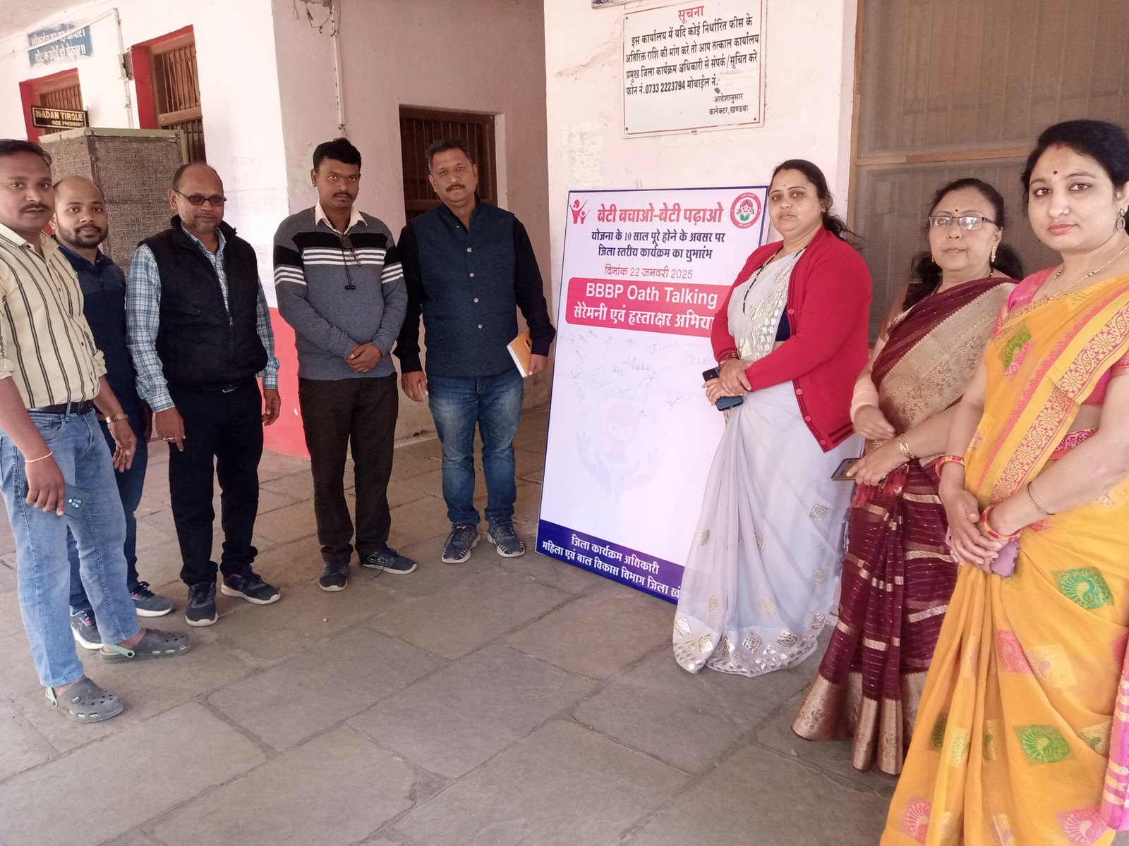 बेटी बचाओ बेटी पढाओ योजना की 10 वीं वर्षगांठ के अवसर पर महिला और बाल विकास विभाग ने हस्ताक्षर अभियान की शुरुआत की, केंद्र सरकार द्वारा संचालित महिला एवं बाल विकास मंत्रालय द्वारा बेटी बचाओ बेटी पढ़ाओ योजना के दस वर्ष पूर्ण होने पर केंद्र सरकार द्वारा 22 जनवरी से 8 मार्च तक विभिन्न कार्यक्रमो का आयोजन किया जाएगा जिसकी शुरुआत बाल कल्याण समिति अध्यक्ष प्रवीण शर्मा ने अपने हस्ताक्षर कर हस्ताक्षर अभियान से की, इस अवसर पर बाल कल्याण समिति सदस्य मोहन मालवीय, रुचि पाटिल, कविता पटेल, स्वप्निल जैन, बाल संरक्षण अधिकारी टीका सिंह बिल्लौरे, विवेक कुमार ने भी हस्ताक्षर कर सहभागिता की।