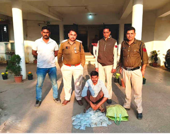 थाना पुसौर के अंतर्गत ग्राम लोहाखान में एसपी रायगढ़ द्वारा गठित विशेष टीम ने निरीक्षक नाशीर खान की अगुवाई में मुखबिर की सूचना पर छापेमारी की। पुलिस टीम ने आरोपी निरंजन विश्वाल के घर आंगन में मयुर छाप अवैध महुआ शराब के 75 पाउच बरामद किए। आरोपी निरंजन विश्वाल (26 वर्ष) निवासी ग्राम लोहाखान को गिरफ्तार कर उसके खिलाफ थाना पुसौर में धारा 34(2), 59(क) आबकारी एक्ट के तहत मामला दर्ज किया गया।
