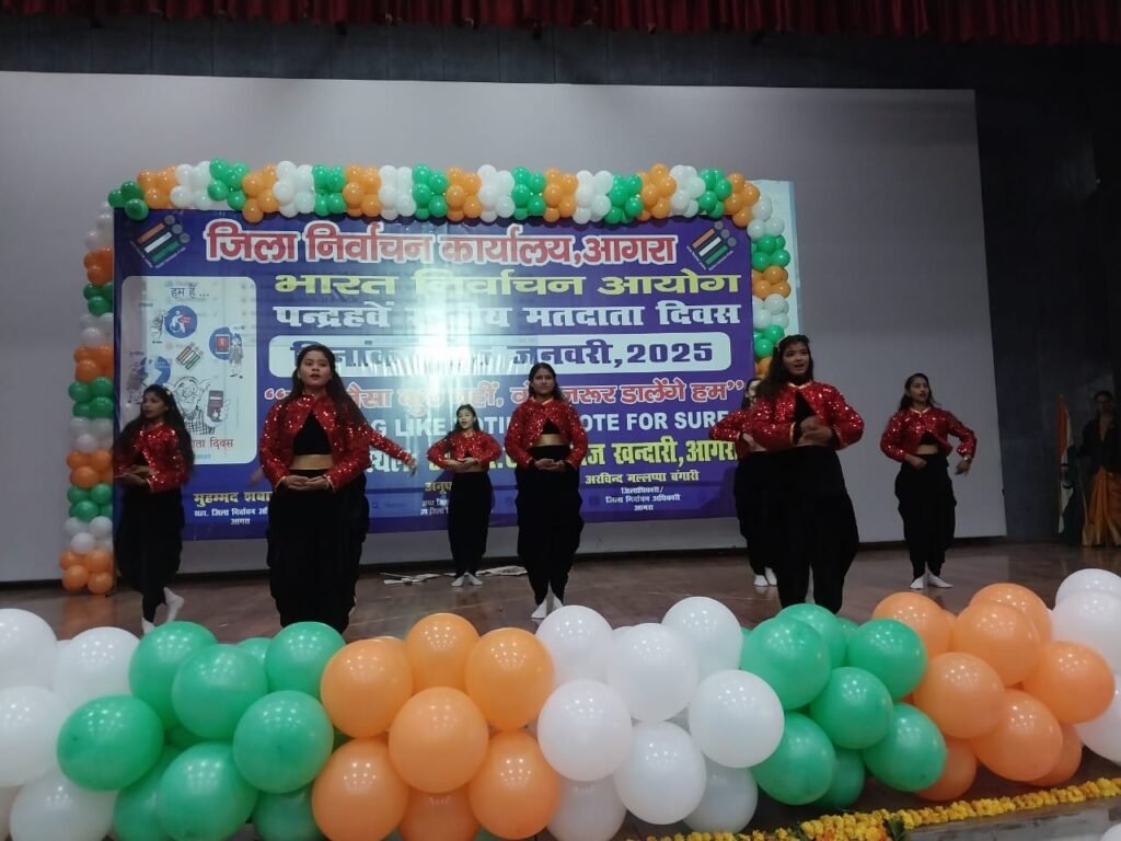 आगरा में राष्ट्रीय मतदाता दिवस के अवसर पर जनपद स्तर पर आरबीएस कॉलेज ऑडिटोरियम में भारत निर्वाचन आयोग के निर्देशानुसार ‘वोट जैसा कुछ नही, वोट जरूर डालेंगे हम’ की थीम पर जनपद में में 15 वें राष्ट्रीय मतदाता दिवस का भव्य आयोजन किया गया।
