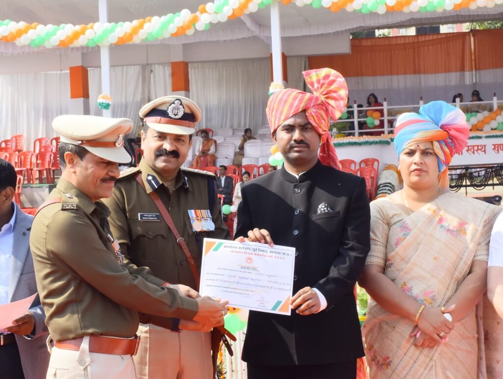 गणतंत्र दिवस के उपलक्ष मे उत्कृष्ट कार्य करने वाले जिले के पुलिस अधिकारी एवं कर्मचारियों को प्रशस्ति पत्र देकर किया गया सम्मान
