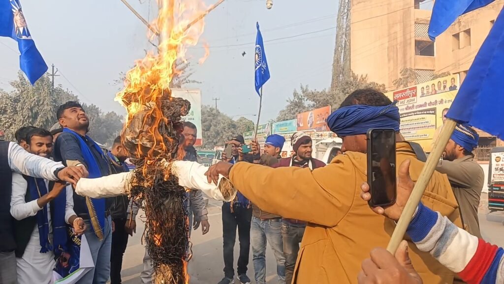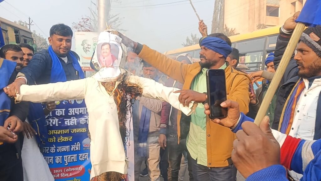 भीम आर्मी भारत एकता मिशन ने गन्ना मंत्री का किया पुतला दहनस