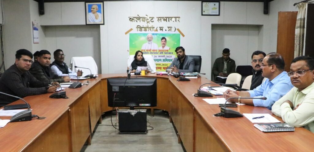 कलेक्टर श्रीमती नेहा मारव्या ने आज सोमवार को कलेक्ट्रेट सभाकक्ष में समय सीमा बैठक ली। उन्होंने बैठक में विभागवार संचालित योजनाओं एवं कार्य प्रगति की समीक्षा की। उक्त बैठक में अपर कलेक्टर श्री अनिल कुमार राठौर, एसडीएम शहपुरा श्री ऐश्वर्य वर्मा, एसडीएम डिंडौरी श्री रामबाबू देवांगन, डिप्टी कलेक्टर वैधनाथ वासनिक सहित अन्य अधिकारी उपस्थित रहे।