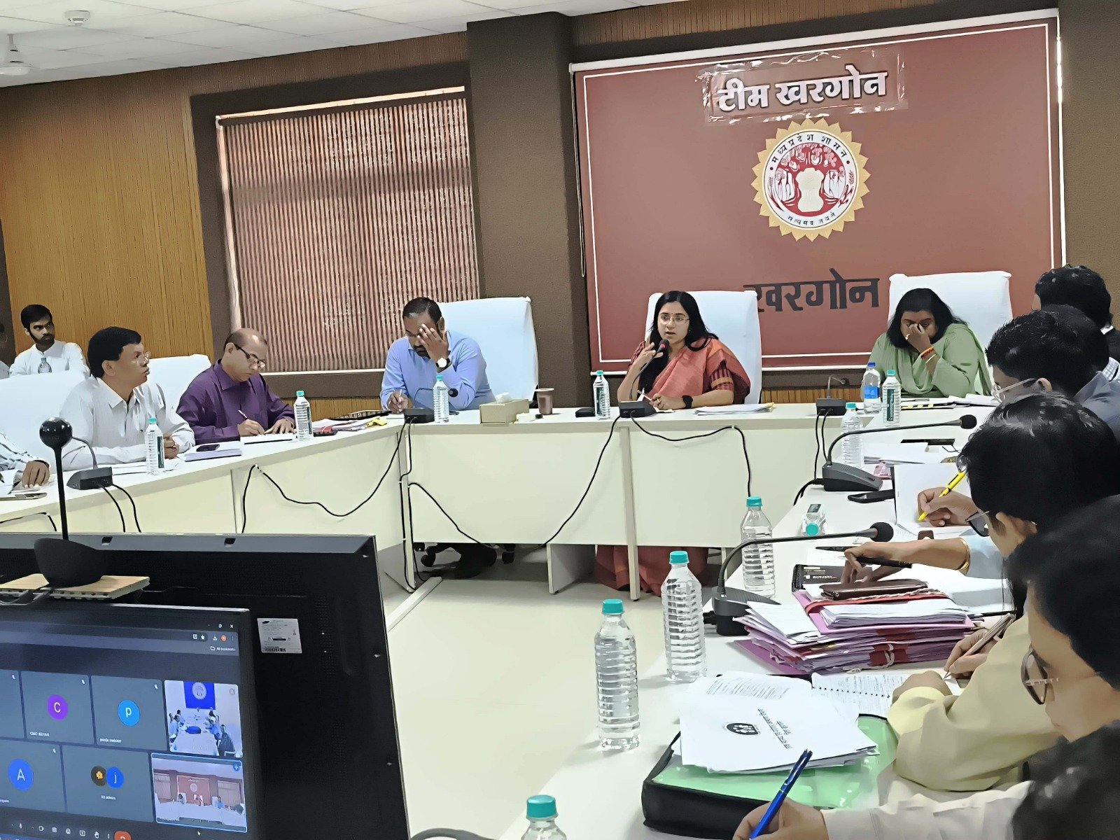 खरगोन त्रिलोक न्यूज़ ब्यूरो अनिल बिलवे:- कलेक्टर श्री भव्या मित्तल की अध्यक्षता में 3 फरवरी को कलेक्ट्रेट सभा कक्ष में टीएल बैठक आयोजित की गई इस बैठक में समय सीमा संबंधी प्रकरणों की विस्तार से समीक्षा की गई और अधिकारियों को आवश्यक दिशा निर्देश दिए बैठक में जिला पंचायत के मुख्य कार्यपालन अधिकारी श्री आकाश सिंह, अपर कलेक्टर श्रीमती रेखा राठौड़ एसडीएम श्री बीएस कलेश, श्री अनिल जैन संयुक्त कलेक्टर श्री सत्यनारायण दर्रो, डिप्टी कलेक्टर श्री पूर्वा मंडलोई, श्री लोकेश छपरे एवं अन्य विभागों के अधिकारी उपस्थित थे। बैठक में सभी एसडीएम तहसीलदार जनपद पंचायतों के सीईओ एवं नगरीय निकायों के सीएमओ वीडियो कांफ्रेंस के माध्यम से उपस्थित थे राजस्व वसूक्त सख्ती से करने के निर्देश बैठक में सर्वप्रथम सीएम हेल्पलाइन के प्रकरणों की समीक्षा की गई इस दौरान सुश्री मित्तल ने सभी अधिकारियों को सख्त निर्देश दिए की सीएम हेल्पलाइन के सभी प्रकरणों की तत्परता से निराकरण करें किसी भी विभाग में 500 दिन से अधिक की लंबीत शिकायत नहीं होनी चाहिए समाधान ऑनलाइन के प्रकरण में अधिकारी की गलती होने पर किसी को भी बचाया नहीं जाएगा और उसे पर कार्यवाही की जाएगी सभी राजस्व अधिकारियों को निर्देशित किया गया है कि किसी भी सरकारी जमीन पर अतिक्रमण नहीं होना चाहिए यदि कहीं पर अतिक्रमण है तो उसे शक्ति से हटा दिया जाए विभिन्न मदों की राजस्व वसुली सख्ती से करने के निर्देश दिए।
