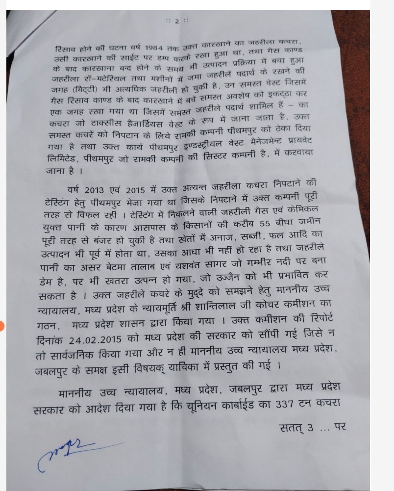 धार सुरेन्द्र दुबे/ आज 07/02/2024 को जिला मुख्यालय धार में पीथमपुर बचाओ रक्षा समिति एवं अन्य सहयोगी संगठनों के द्वारा यूनियन कार्बाइड कचरा का जहरीला के जलाने के विरोध में आज धरना प्रदर्शन कार्यक्रम आयोजित कार्यक्रम संपन्न हुआ
