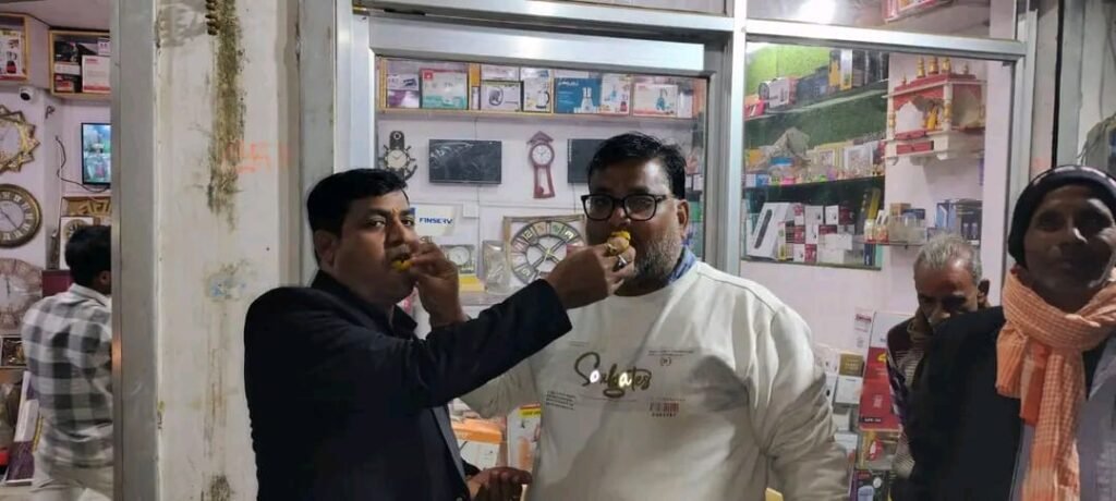दिल्ली विधानसभा और यूपी के मिल्कीपुर उपचुनाव में बड़ी जीत पर विंढमगंज जनपद सोनभद्र मण्डल के कार्यकर्ताओं ने एक दूसरे को मीठा खिलाकर मनाया जश्न