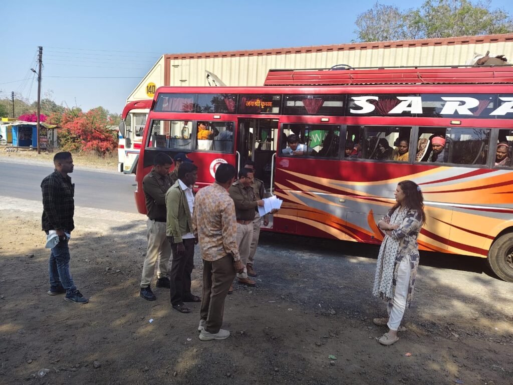 खरगोन त्रिलोक न्यूज़ ब्यूरो/ अनिल बिलवे: – कलेक्टर सुश्री भव्या मित्तल के निर्देश पर परिवहन विभाग का अमला जिले के विभिन्न स्थानों पर वाहनों की जांच कर नियम विरुद्ध वाहनों का संचालन पाए जान कार्यवाही कर रहा है इसी कड़ी में अतिरिक्त क्षेत्रीय परिवहन अधिकारी श्रीमती रितु अग्रवाल ने 15 फरवरी को खरगोन में यात्री बसों एवं अन्य वाहनों की आकस्मिक जांच की है निजी यात्री बसों के निरीक्षण के दौरान उनके दस्तावेजों की जांच की गई है बसों की चेकिंग के दौरान 15 वर्ष से अधिक पुरानी एक निजी यात्री बस क्रमांक एमपी 09 एफ ए 27 75 संचालन पाए जान पाए जाने पर फिटनेस निरस्त करने की कार्यवाही की गई इसी प्रकार अन्य निजी यात्री बसों का निरीक्षण किया जाकर यात्री बसों की दस्तावेजों की जांच की गई एवं जांच के दौरान पाई गई कमियों की पूर्ति निश्चित समय अंतराल में पूरे किए जाने के निर्देश दिए इसके साथ ही बस संचालकों को समझाईश दी गई कि वह अपने वाहनों का संचालन अपूर्ण दस्तावेजों के साथ कदापि न करें अन्यथा चेकिंग के दौरान मध्य प्रदेश मोटरयान अधिनियम 1988 के अनुसार वैधानिक कार्यवाही की जाएगी।