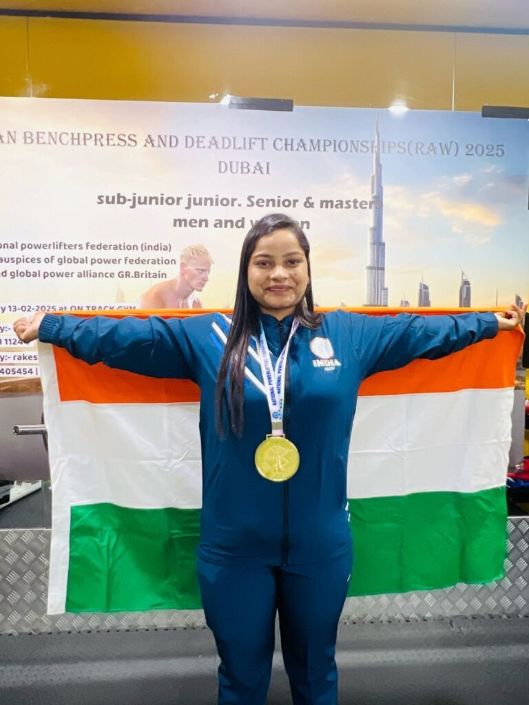 अंतरराष्ट्रीय स्तर में हुई दुबई एशियाई पावरलिफ्टिंग बेंच प्रेस एवं डेडलिफ्ट 2025 की प्रतियोगिता का आयोजन 12 फरवरी 2025 से 15 फरवरी 2025 तक दुबई (यूनाइटेड अरब एमिरात ) में आयोजित हुआ।