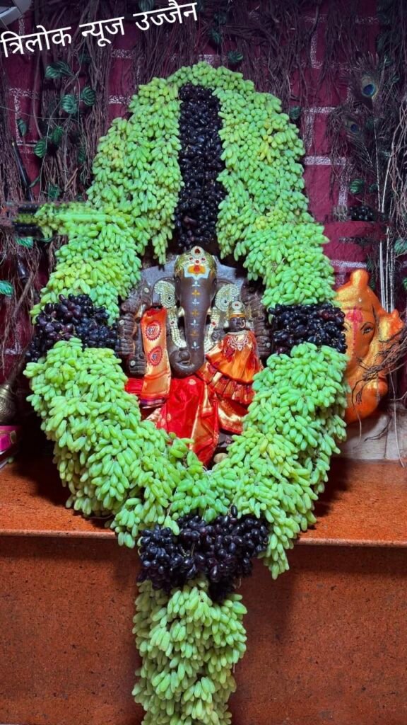 🎯सवा क्विंटल हरे और काले अंगूरो से श्री दसभुजा गणेश जी का किया गया भव्य श्रृंगार दर्शन,,,, ।