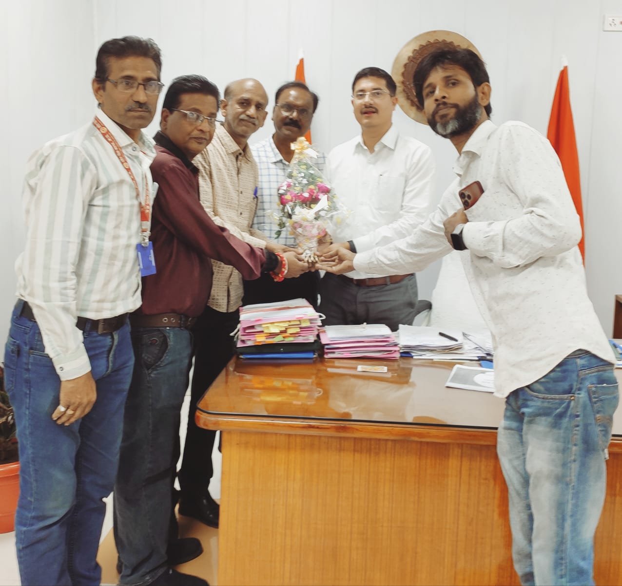 खंडवा।। निजी स्कूलों में अध्यनरत विद्यार्थियों को होने वाली विभिन्न परेशानियों के हल के लिए गठित प्रदेश स्तरीय पालक महासंघ जिला ईकाई खंडवा के पदाधिकारी सदस्यों द्वारा संगठन अध्यक्ष ओम पिल्ले के नेतृत्व में नवागत कलेक्टर श्री ऋषव गुप्ता को गुलदस्ता भेंटकर स्वागत किया गया। यह जानकारी देते हुए जिला ईकाई प्रवक्ता एवं मीडिया प्रभारी निर्मल मंगवानी में बताया कि श्री पिल्ले द्वारा कलेक्टर श्री गुप्ता को संगठन के उद्देश्य के बारे में एवं अशासकीय शिक्षण संस्थानों में होने वाली छात्र एवं पालकों की कठिनाइयों के बारे में अवगत कराया गया। वही कलेक्टर श्री गुप्ता द्वारा जिला शिक्षा अधिकारी से आगामी बैठक में पालक महासंघ के पदाधिकारियों को भी आमंत्रित किए जाने के निर्देश दिए। इस मौके पर ओम पिल्ले, प्रदेश कार्यकारिणी सदस्य गणेश भावसार, पूर्व डीएसपी आनंद तोमर, संगठन संरक्षक अनिल चौधरी, उपाध्यक्ष संजय अग्रवाल, सचिव शैलेश खंडेलवाल, प्रवक्ता एवं मीडिया प्रभारी निर्मल मंगवानी, एडवोकेट विष्णु अग्रवाल, राजेश पोरपंथ, मयूर गंगराड़े, आशीष खंडेलवाल आदि उपस्थित थे।