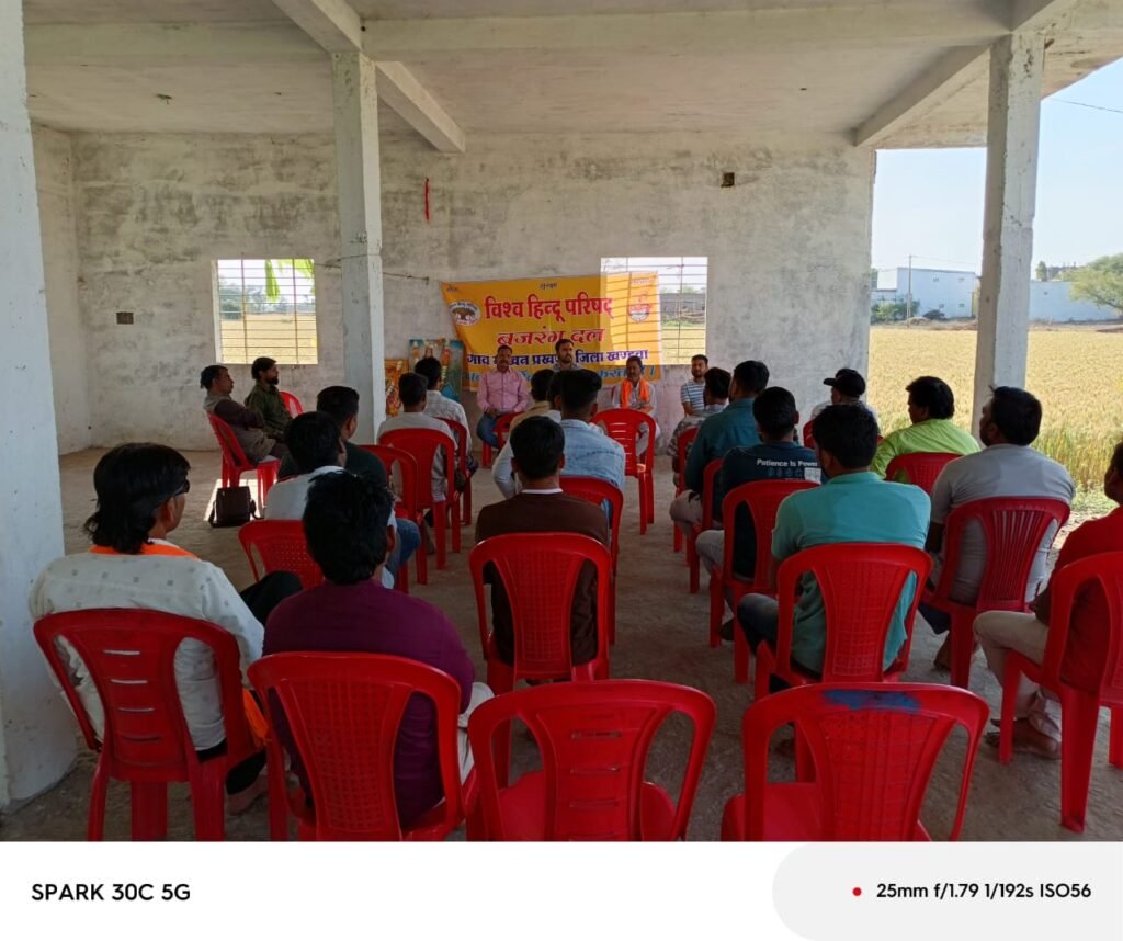 खंडवा : विश्व हिन्दू परिषद, बजरंग दल की छेगांव माखन प्रखंड की बैठक आहूत की गई… बैठक की शुरुआत श्री राम दरबार एवं भारत माता के चित्र पर माल्यार्पण कर प्रारंभ हुई, बैठक में विभाग संयोजक आदित्य जी मेहता,,प्रखंड अध्यक्ष शंकर जी पटेल,, जिला मंत्री अजय चन्द्रे मंचासिन रहे… बैठक में पूर्व में किए हुए,कार्यों की समीक्षा की गई,,, और आगामी कार्यक्रम की रूपरेखा बनाई गई, जिसमे आगामी मार्च माह में बजरंग दल का वृहद एकत्रीकरण 29 मार्च को इंदौर में होगा,,जिसमें पूर्ण गणवेश में बजरंगी शामिल होंगे करेंगे,, कदम ताल,, प्रत्येक प्रखंड,,खंड,, ग्राम समितियों में बजरंग दल कार्यक्रम माध्यम से युवाओं को जोड़ने का कार्य करेगा। जेसे बजरंग दल संयोजक सम्मेलन,,ग्राम दर्शन यात्रा,,त्रिशूल दीक्षा कार्यक्रम ,, ज्वाइन टू बजरंग दल, प्रखंड बैठक में मुख्य रूप से विभाग संगठन मंत्री श्री वासुदेव जी पांड्या,,संयोजक आदित्य मेहता,, जिला सह संयोजक शुभम जी निकुम, जिला गौ रक्षा प्रमुख हरिओम सेन,,प्रखंड उपाध्यक्ष डॉ लोकेश जी विश्वकर्मा,,महेंद्र जी,,प्रखंड ,,खंड ,,पदाधिकारी उपस्थित रहे।।।