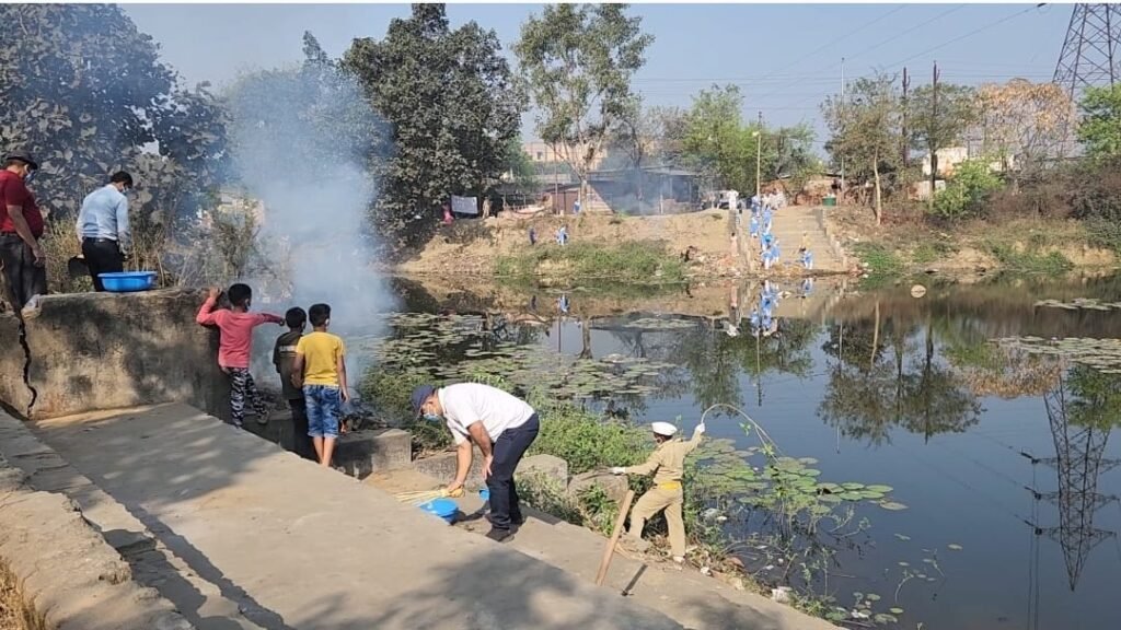 रायगढ़ संत निरंकारी मिशन की सेवा भावना और मानव कल्याण के संकल्प को साकार करने के लिए सतगुरु माता सुदीक्षा जी महाराज एवं सत्कार योग्य निरंकारी राजपिता रमित जी के पावन सान्निध्य में प्रोजेक्ट अमृत के अंतर्गत ‘स्वच्छ जल, स्वच्छ मन’ परियोजना के तहत विजयपुर तालाब की सफाई मिशन से जुड़े सदस्यों ने की।इस स्वच्छता अभियान में मिशन से जुड़े सेवादारों में बाल संगत के छोटे बच्चों ने भी अपनी सहभागिता निभाई।