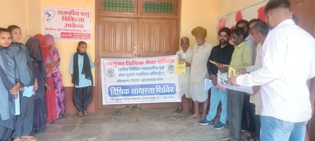 राजस्थान राज्य विधिक सेवा प्राधिकरण के निर्देशानुसार व जिला विधिक सेवा प्राधिकरण झालावाड़ के निर्देशन में तथा अध्यक्ष तालुका विधिक सेवा समिति चौमहला न्यायाधीश राजपाल मीना के मार्गदर्शन में तालुका चौमहला क्षेत्र के ग्राम पिपलिया खुर्द तहसील डग के अटल सेवा केंद्र पर पीएलवी द्वारा विधिक साक्षरता एवं जागरूकता कार्यक्रम का आयोजन किया गया