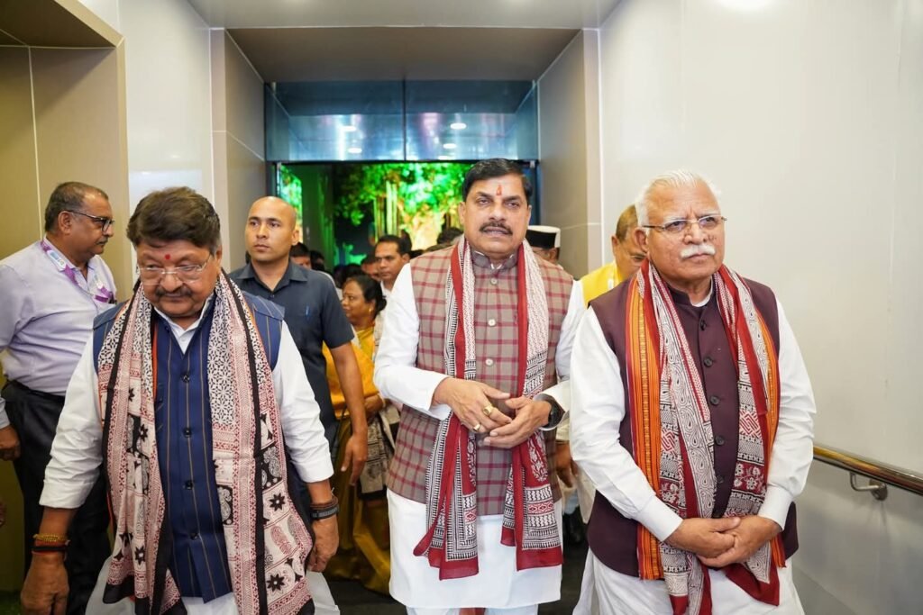 “ग्लोबल इन्वेस्टर्स समिट 2025” में माननीय केंद्रीय मंत्री श्री Manohar Lal के आगमन पर मुख्यमंत्री डॉ. मोहन यादव ने उन्हें पुष्प गुच्छ भेंटकर आत्मीय स्वागत व अभिनंदन किया।