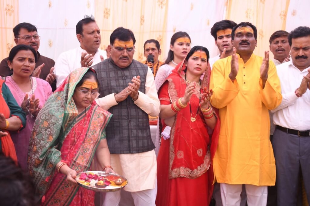 शिवलिंग की पूजा अर्चना कर सांसद, विधायक ने परिवार सहित विश्व शांति एवं सभी के कल्याण के लिए हवन में दी आहुतीया,