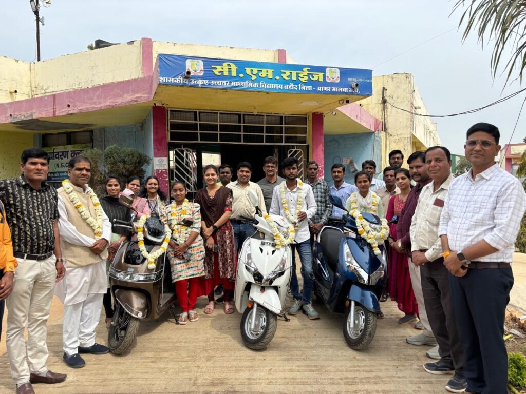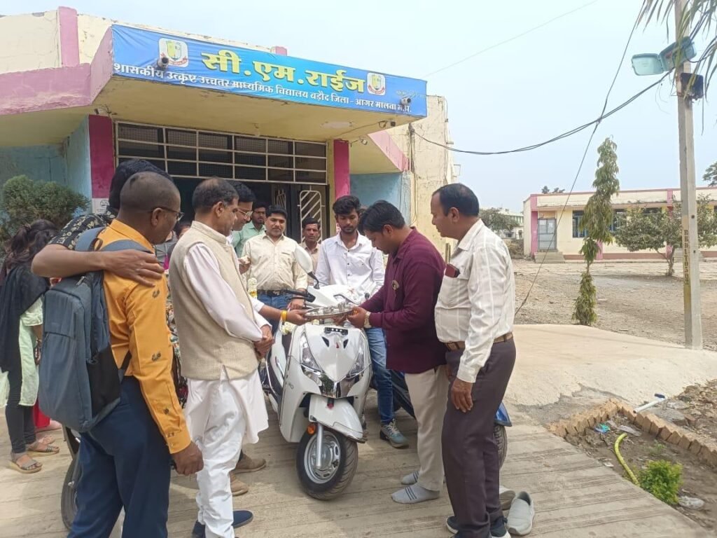 आगर जिले के बड़ोद में स्थित शासकीय उत्कृष्ट माध्यमिक विद्यालय में एक विशेष कार्यक्रम का आयोजन किया गया इस दौरान सत्र 2023 – 24 के कक्षा 12वीं के मेघावी छात्रों को सम्मानित किया गया मध्यप्रदेश शासन की योजना के तहत 3 प्रति भावना विद्यार्थी को स्कूटी प्रदान की गई।