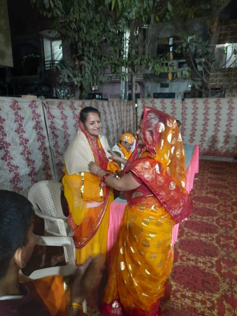 इस अवसर पर नव नियुक्त मंडल अध्यक्ष श्री महेश गोस्वामी ने अध्यक्ष महेशजी गोस्वामी का कोलोनी के संरक्षक प्रकाश चन्द्रजी गोड ने पगड़ी दुपट्टा पहना कर स्वागत किया।