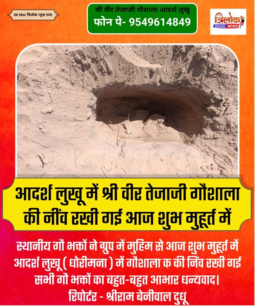 धोरीमन्ना – व्हाट्सएप ग्रुप के सहयोग से आज गौ भक्तों ने आदर्श लुखू मे श्री वीर तेजाजी महाराज के नाम गौशाला की रखी नींव