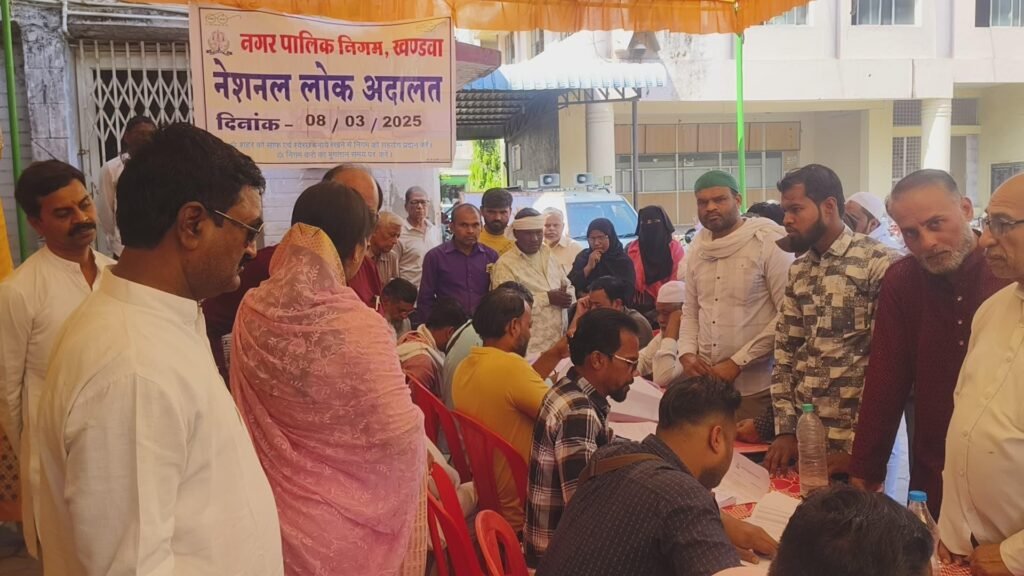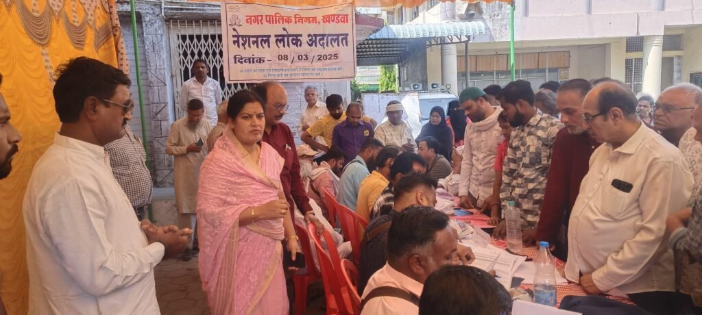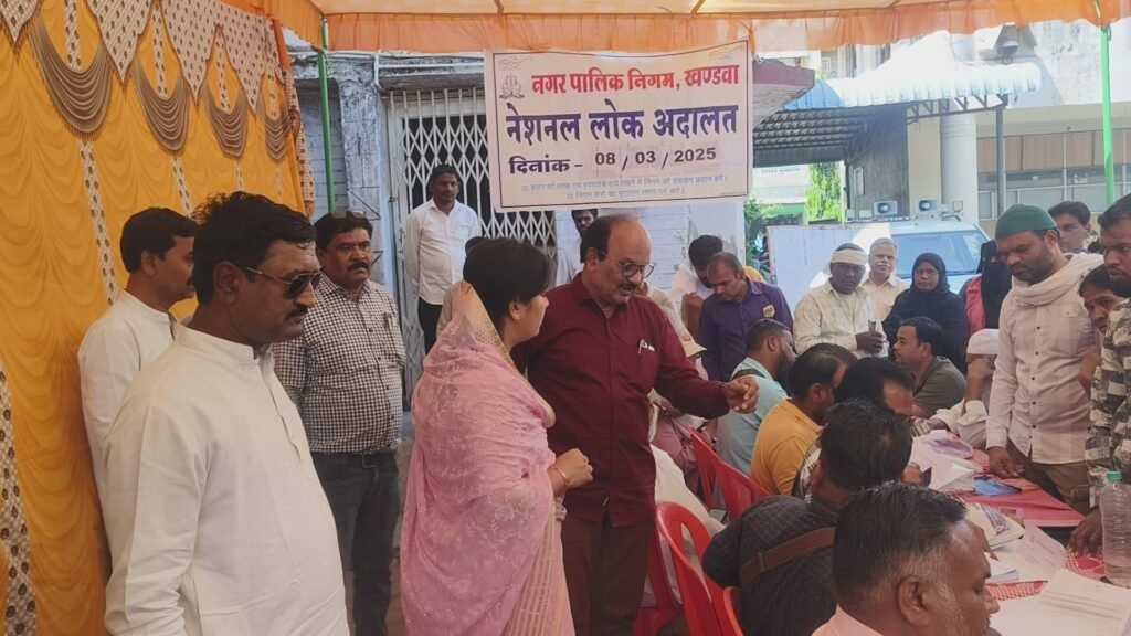 खण्डवा:-शनिवार को नगर निगम कार्यालय प्रांगण में मध्य प्रदेश विधिक सेवा प्राधिकरण द्वारा आयोजित नेशनल लोक अदालत शिविर का आयोजन किया गया। इस शिविर में नगर निगम के समस्त करदाताओं को संपत्तिकर एवं जलकर के भुगतान का अवसर प्रदान किया गया।