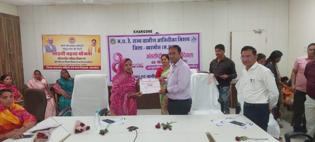 08 मार्च को मनाए जाने वाला अंतरराष्ट्रीय महिला दिवस विश्व की महिलाओं के योगदान, उनके त्याग और साहस को समर्पित है। इस खास दिवस को महिलाओं के मान-सम्मान, समाज, सियासत और आर्थिक क्षेत्र में उनकी तरक्की के जश्न के तौर पर भी मनाया जाता है। महिलाएं आज के समय पुरुषों के साथ कंधे से कंधा मिलाकर चल रही हैं। इसी अवसर को लक्षित करते हुए 8 मार्च को मध्य प्रदेश डे राज्य ग्रामीण आजीविका मिशन जिला पंचायत खरगोन द्वारा अंतरराष्ट्रीय महिला दिवस कार्यक्रम का आयोजन कलेक्टर कार्यालय खरगोन के एनआईसी कक्ष में किया गया l कार्यक्रम में विभिन्न् ग्रामों से स्व सहायता समूह, ग्राम संगठन एवं सीएलएफ की महिला पदाधिकारी उपस्थित रही l