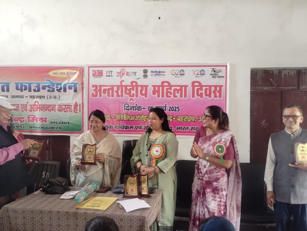 बहराइच। अंतर्राष्ट्रीय महिला दिवस के अवसर पर नेहरू युवा केन्द्र बहराइच द्वारा उच्च प्राथमिक विद्यालय, कल्पीपारा में आयोजित कार्यक्रम में विभिन्न महिला मंडलों की महिला सदस्यों, ग्राम की महिलाओं एवं बच्चों द्वारा प्रतिभाग किया गया। कार्यक्रम के दौरान मुख्य अतिथि प्रोफेसर गृह विज्ञान किसान पी.जी. कॉलेज बहराइच डॉ. तस्नीम फातिमा जैदी, विशिष्ट अतिथि प्रोफेसर किसान पीजी कॉलेज डॉ. सविता वर्मा, विद्यालय के प्रधानाध्यापक समर फिरदौस, शिक्षिका रामा पाण्डेय एवं अध्यक्ष जनहित फाउंडेशन उमेश चंद्र मिश्रा द्वारा मौजूद महिलाओं को नारी सशक्तिकरण एवं स्वावलम्बन के लिए प्रेरित करते हुए केन्द्र व राज्य सरकार द्वारा संचालित विभिन्न योजनाओं एवं कार्यक्रमों की जानकारी प्रदान की गयी। केन्द्र के लेखा एवं कार्यक्रम पयवेक्षक इंद्रसेन चौधरी द्वारा कार्यक्रम के उद्देश्यों के बारे में जानकारी दी तथा सभी अतिथि का आभार ज्ञापित किया।
